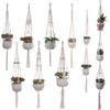| Macetas para jardinería y ecologización, red colgante de cuerda de cáñamo, canasta colgante para macetas, canasta colgante con patrón de bolsillo de malla, cuerda de algodón fino tejida a mano pura |