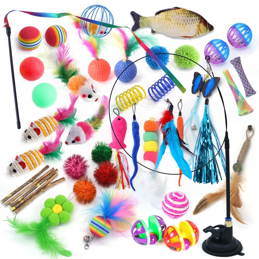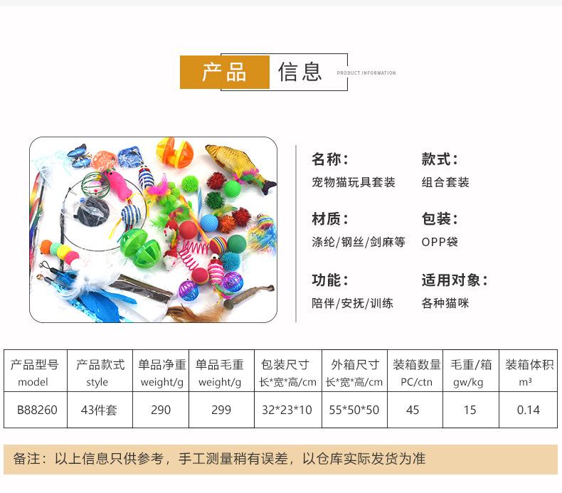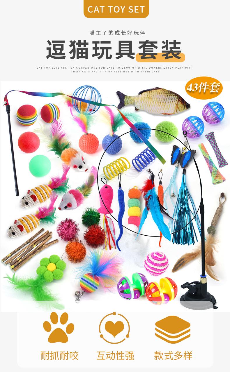 Venta caliente transfronteriza, juguete para gatos, bola de campana, pluma, divertido palo para gatos, peluche de ratón, divertido palo para gatos, traje de 43 piezas