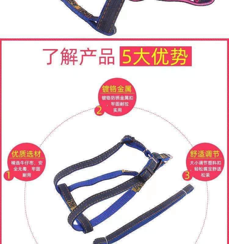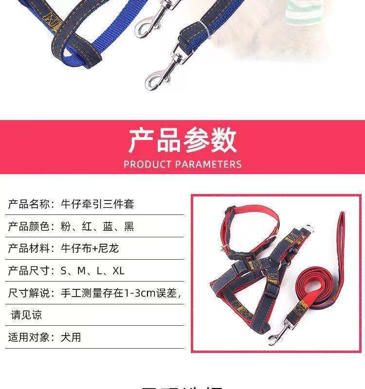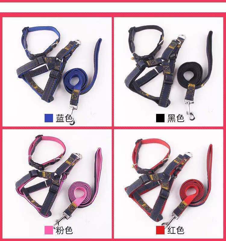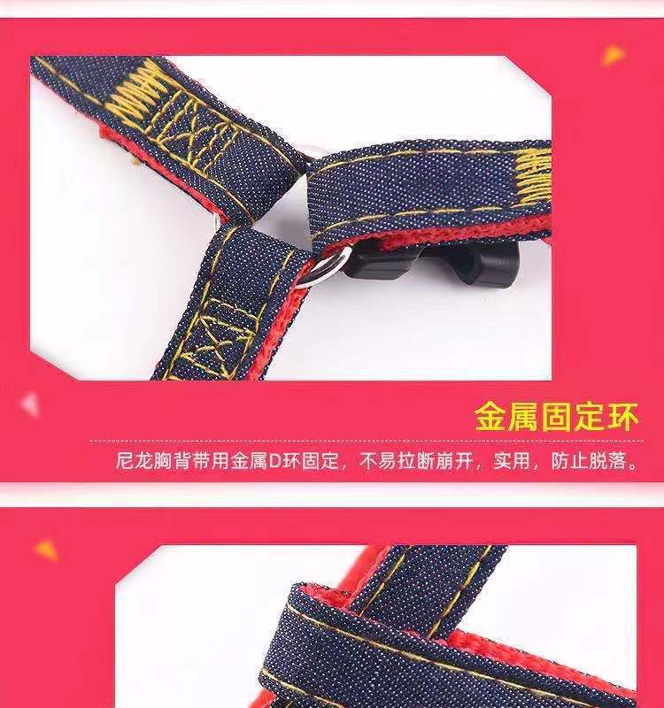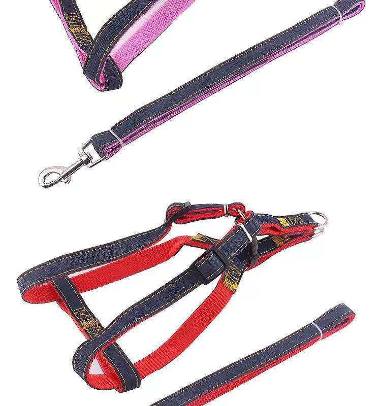 Correa para mascotas, parche de mezclilla, correa para el pecho, correa para perros, cadena para perros, correa para perros, suministros para mascotas