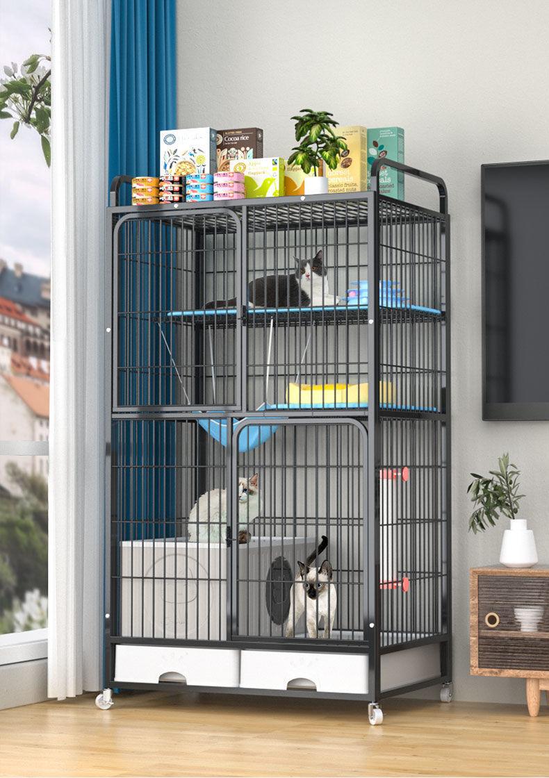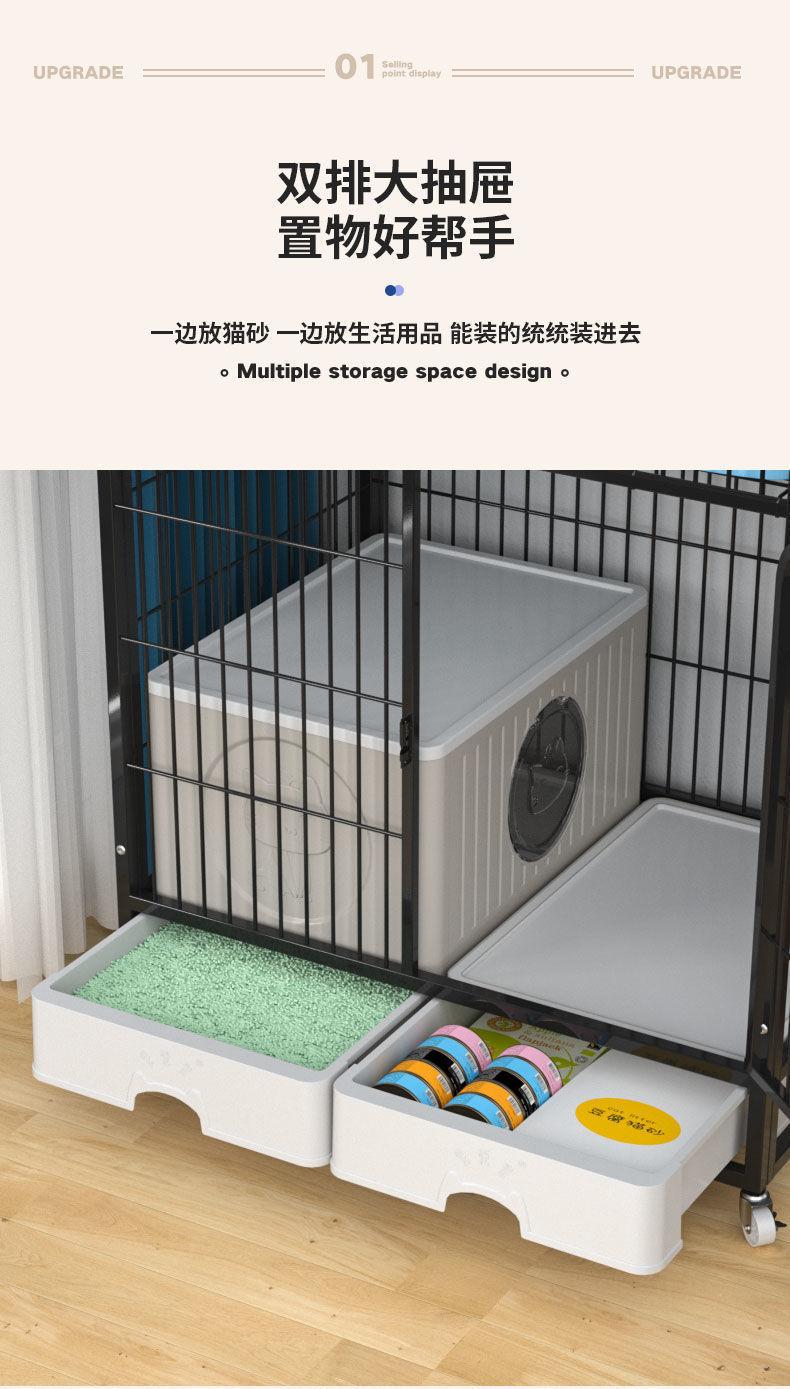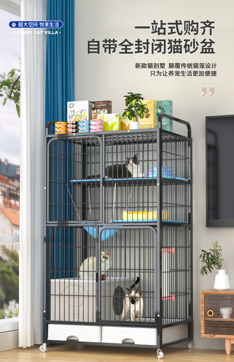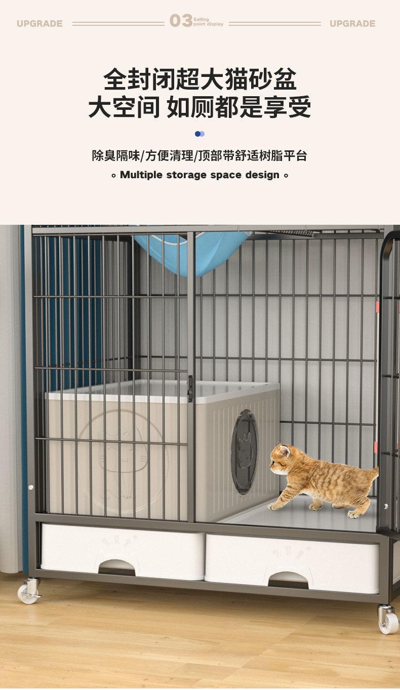 Jaula para gatos, casa para gatos de interior, gran espacio libre con inodoro, nido grande integrado para gatos, jaula para gatos