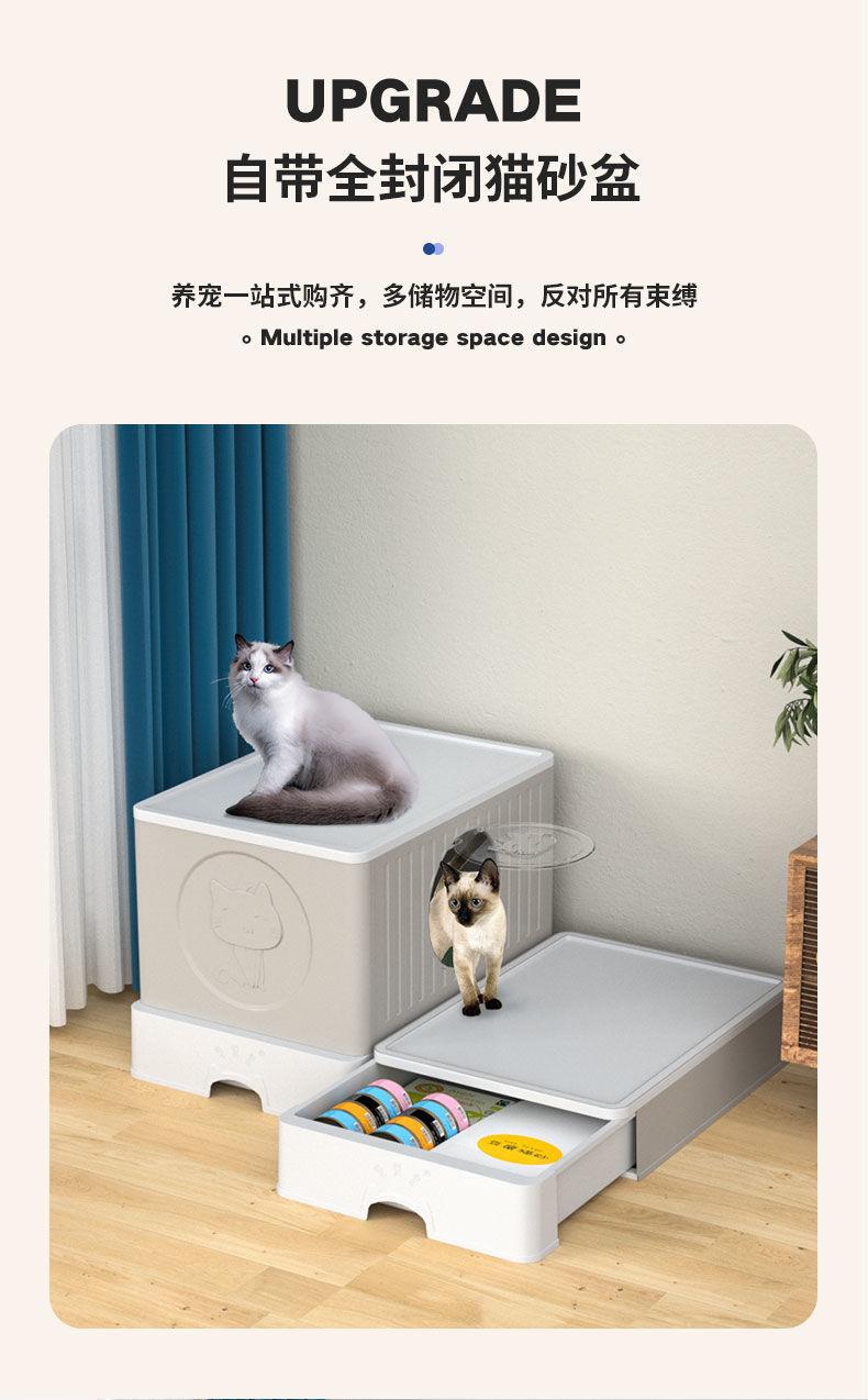 Oversized three-layer [fully enclosed litter box * shelf] white