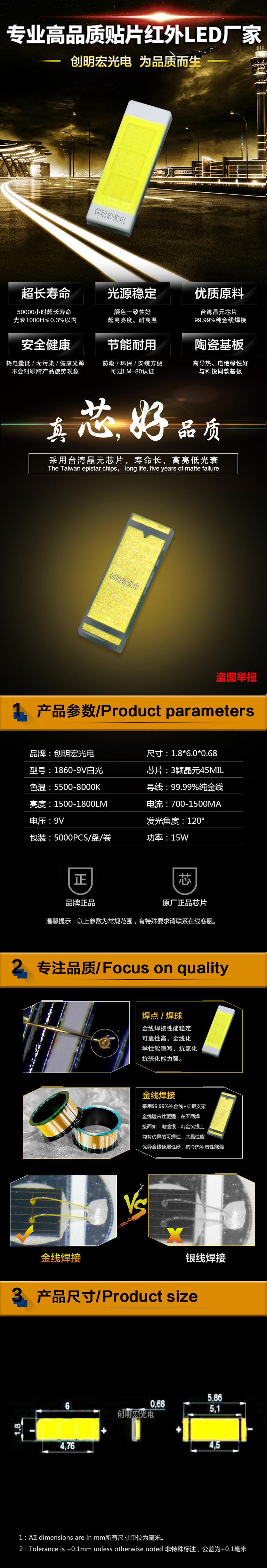 1860 Luz Blanca 10W 1806 Luz Blanca 9V Alta Potencia Faro de Coche Led Blanco Csp Cerámica Led Perlas de Lámpara