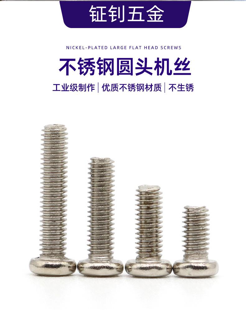 Tornillo de cabeza redonda cruzada de acero inoxidable 201 M3M4M5M6M8, tornillo de máquina redondo, tornillo de máquina de cabeza plana, alambre de máquina GB818 spot