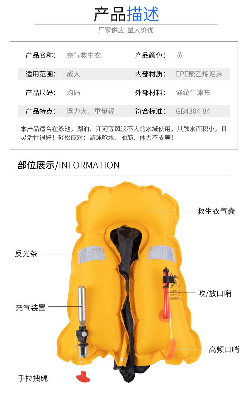 Chaleco salvavidas inflable con babero marino, venta al por mayor, chaleco salvavidas inflable para pesca, chaleco salvavidas inflable portátil.