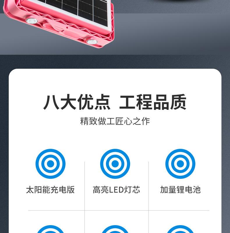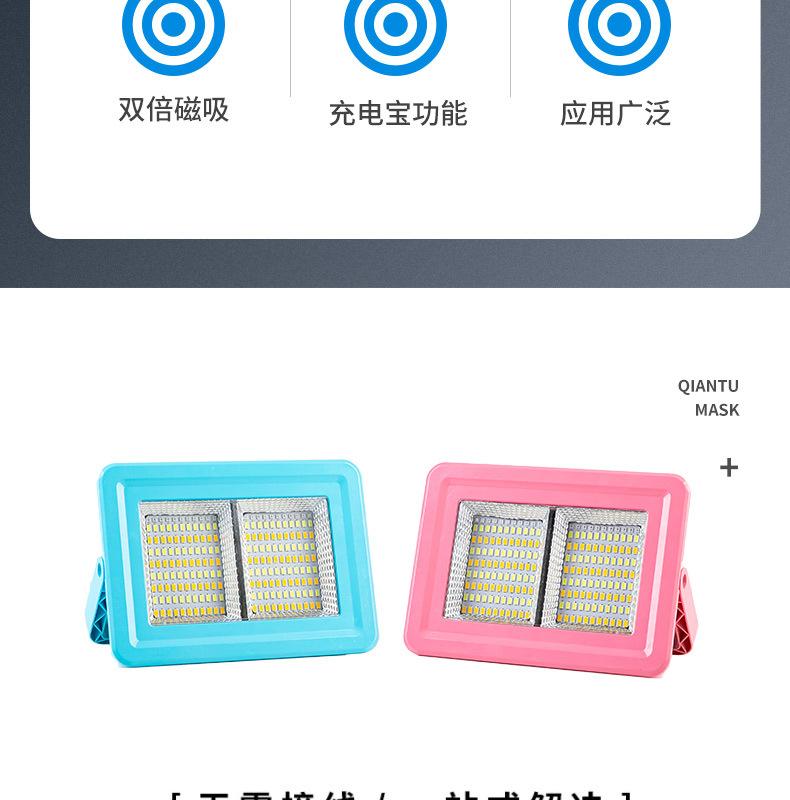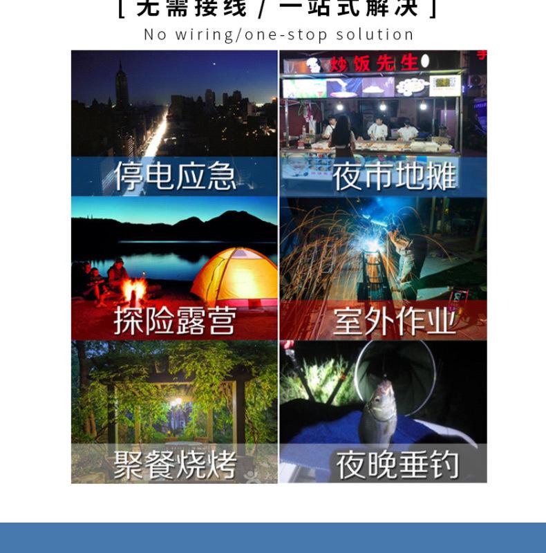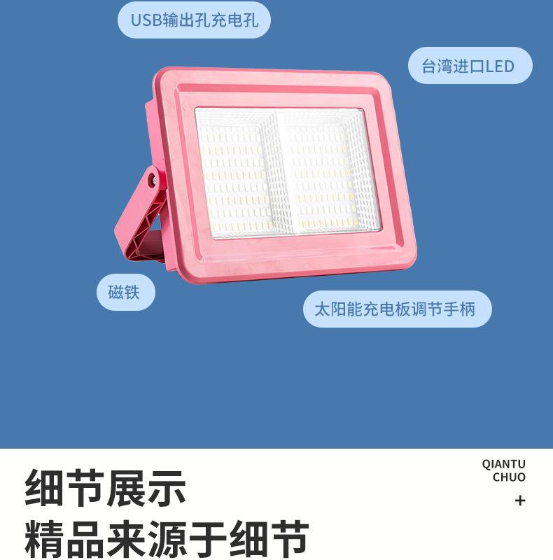 Proyector de carga solar transfronterizo, luz de camping portátil de emergencia para exteriores, iluminación de puesto con carga rápida USB