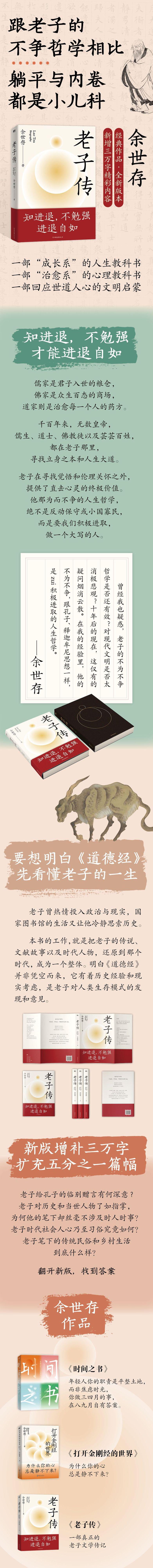 ◎ Una nueva edición complementaria de las obras clásicas de Yu Shicun, un libro de texto de vida orientado al crecimiento, un libro de texto de psicología orientado a la sanación y una iluminación de la civilización que responde al mundo y al corazón humano. ◎ Comparada con la filosofía de no contienda de Lao Tzu, ¡recostarse y la involución son pan comido! El confucianismo es el granero para que los caballeros entren al mundo, el budismo es el centro comercial para todo tipo de seres, y el taoísmo es la receta para la sanación de todos. Durante miles de años, innumerables emperadores, eruditos confucianos, taoístas, budistas y gente común han buscado en Lao Tzu el fundamento de sus vidas y el camino de la vida. Además de buscar la iluminación y la atención ética, Lao Tzu ofrece el valor supremo que llega al alma. Su filosofía de vida de hacer sin competir no es en absoluto reaccionaria ni conservadora, ni propia de un país pequeño con poca gente, sino que nos exige ser proactivos y ser grandes hombres. ◎ La nueva versión añade 30.000 palabras de nuevos conocimientos, etc.