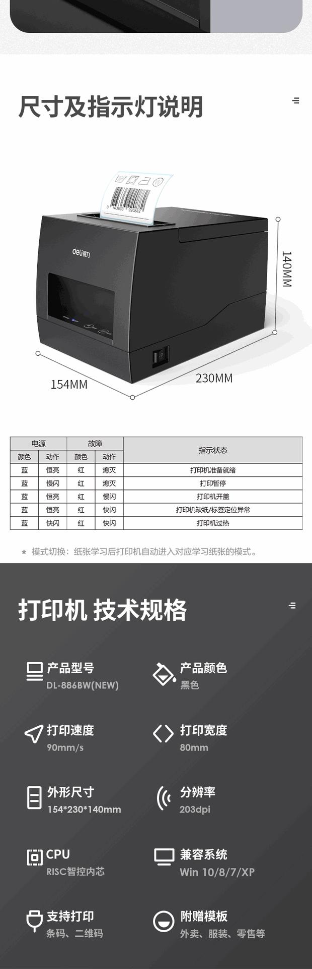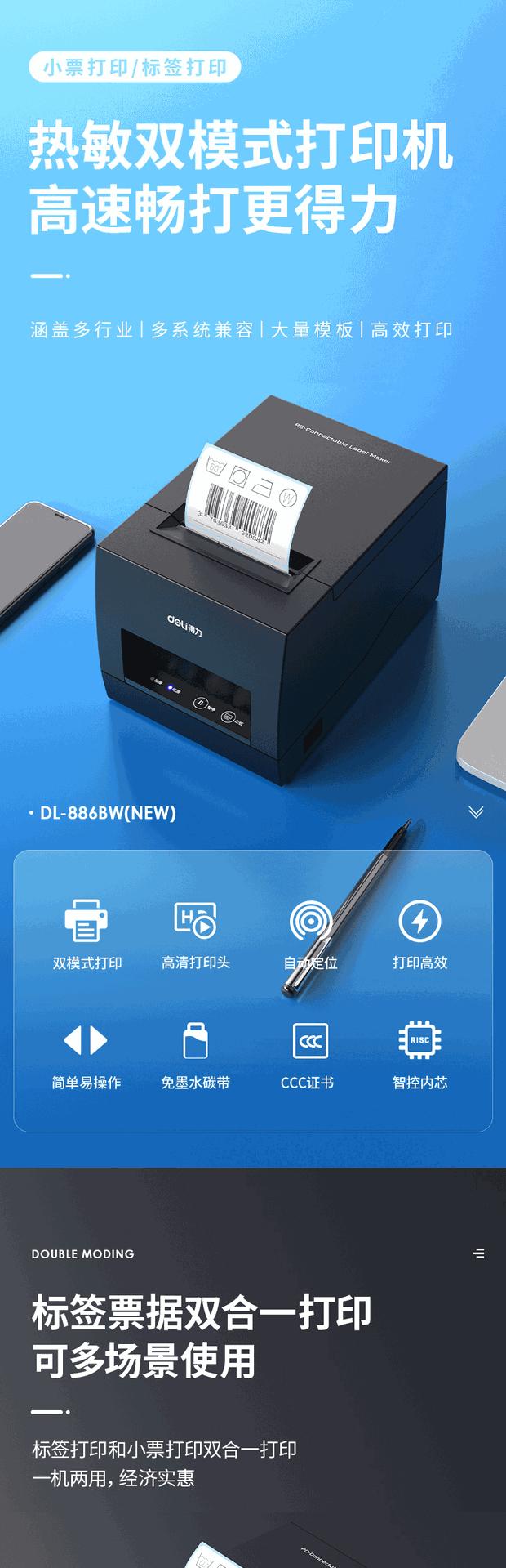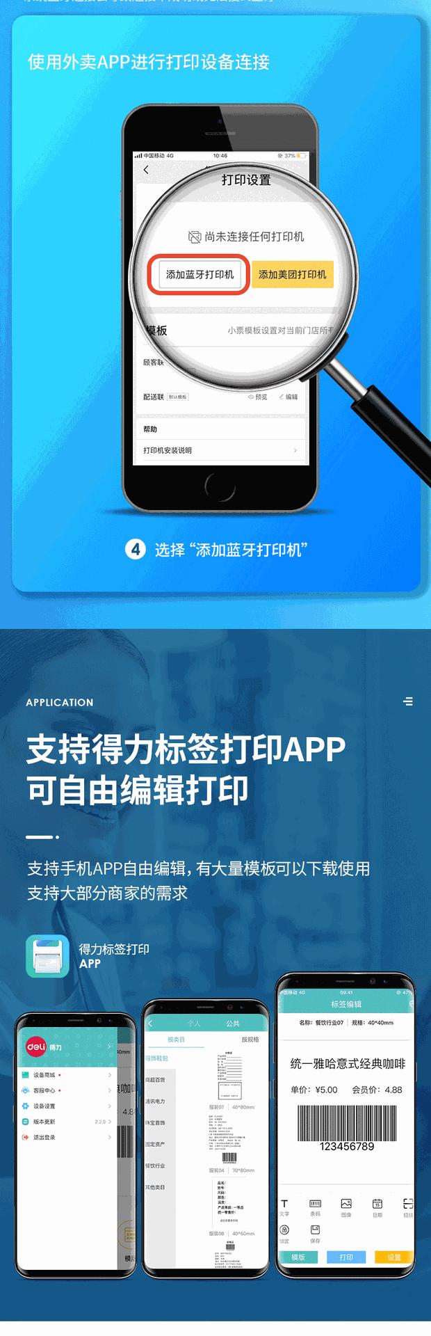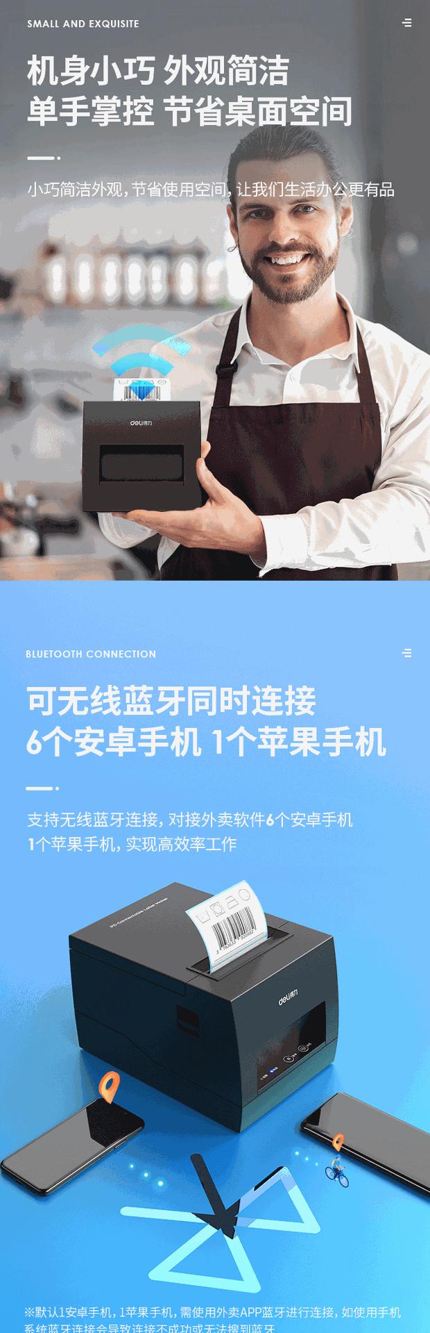 Impresora térmica Deli DL-886BW para etiquetas, pedidos exprés, para llevar, teléfono móvil, máquina de etiquetas con Bluetooth