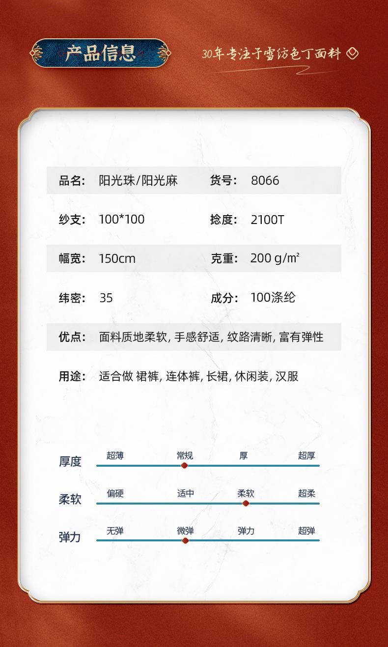 Tela de gasa con cuentas de sol de poliéster de 200 g, tejido de cáñamo con sol para primavera y verano, tela para pantalones de pierna ancha y vestidos Han