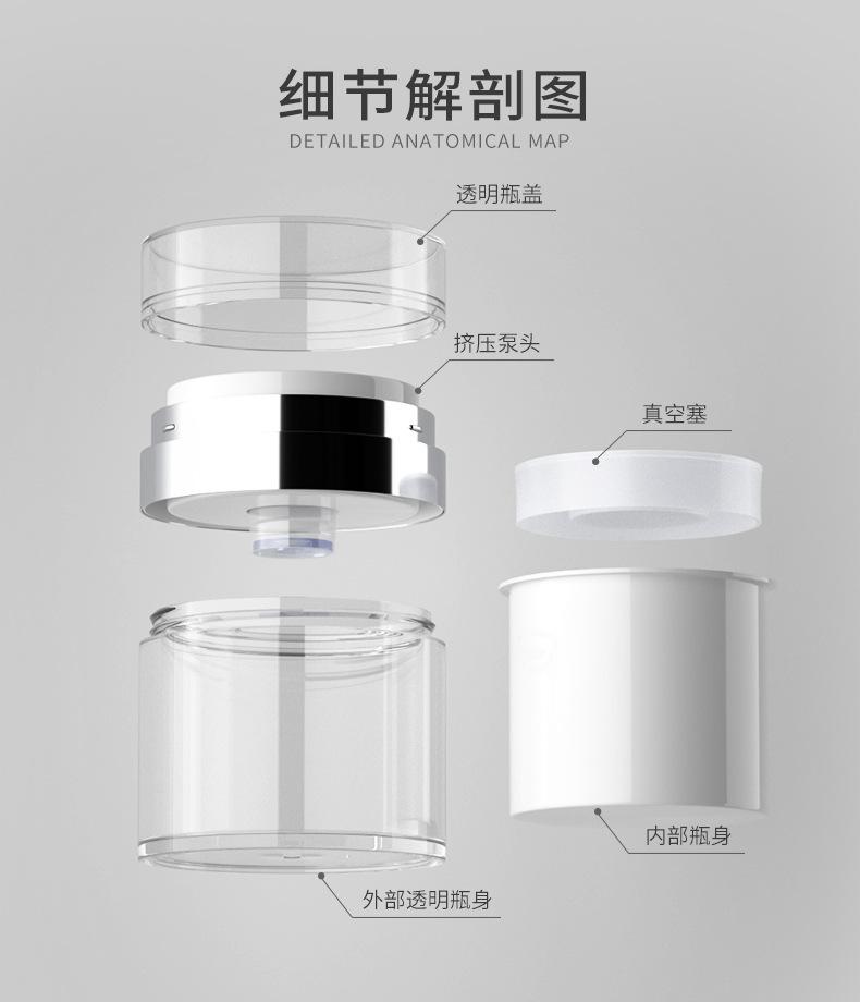 Botella de acrílico al vacío de 15 g, botella de crema, caja de crema, botella de crema, botella de presión, paquete al por mayor
