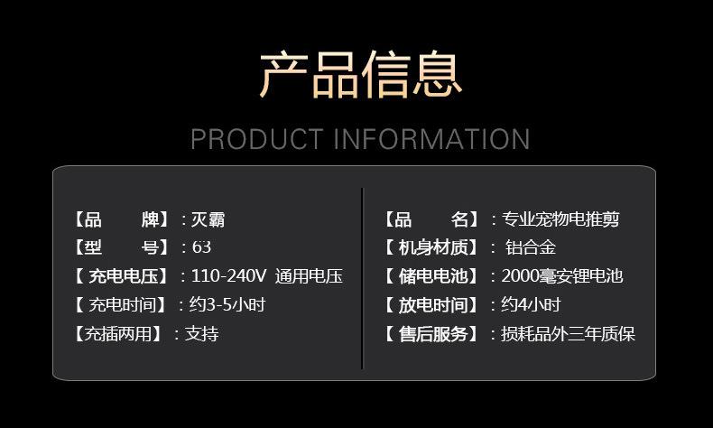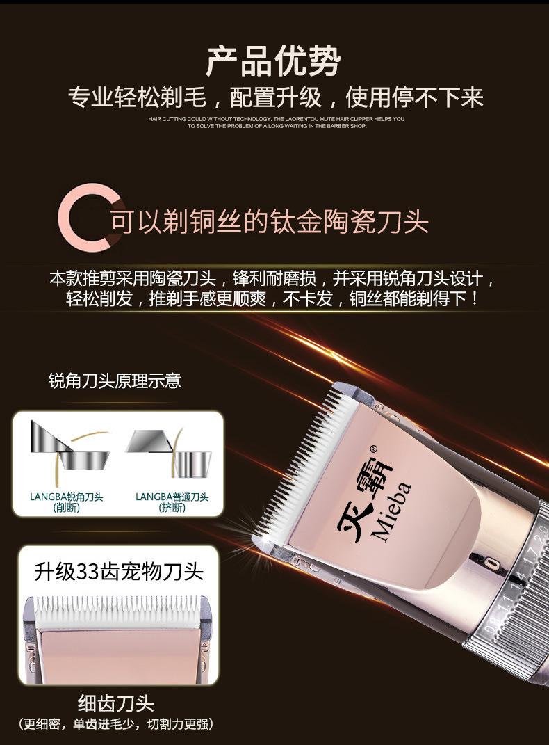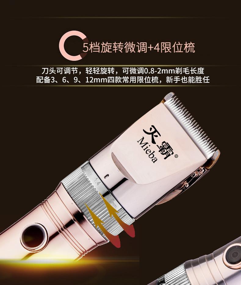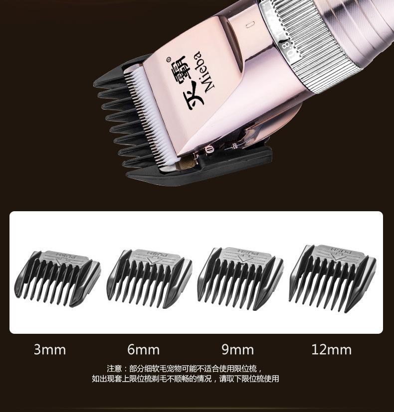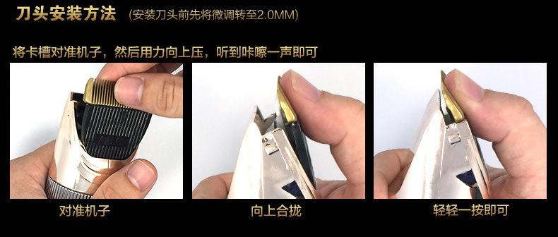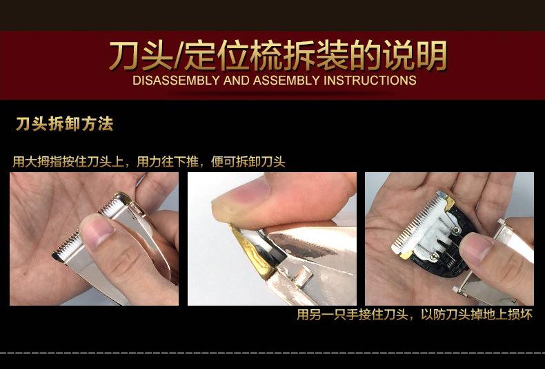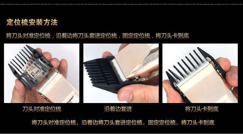 Accesorios del producto: caja de embalaje, manual de instrucciones, cuatro peines guía, un cargador, una botella de aceite lubricante (por favor deje un mensaje si no desea que se exporte), un cepillo de limpieza