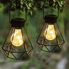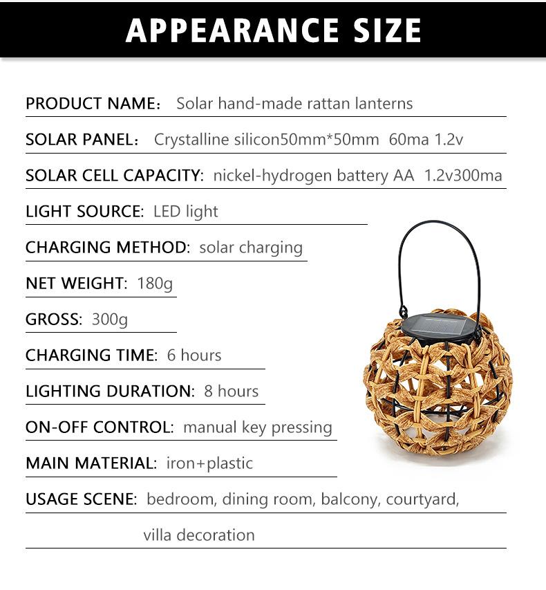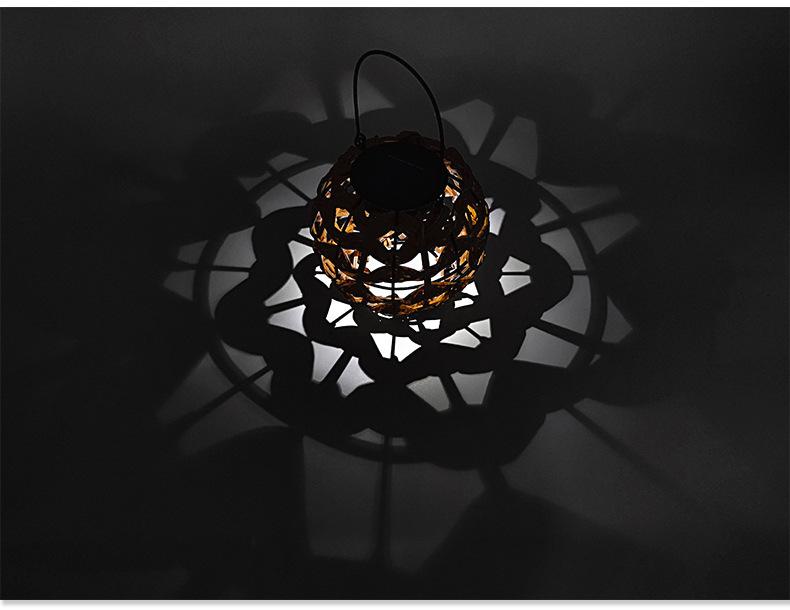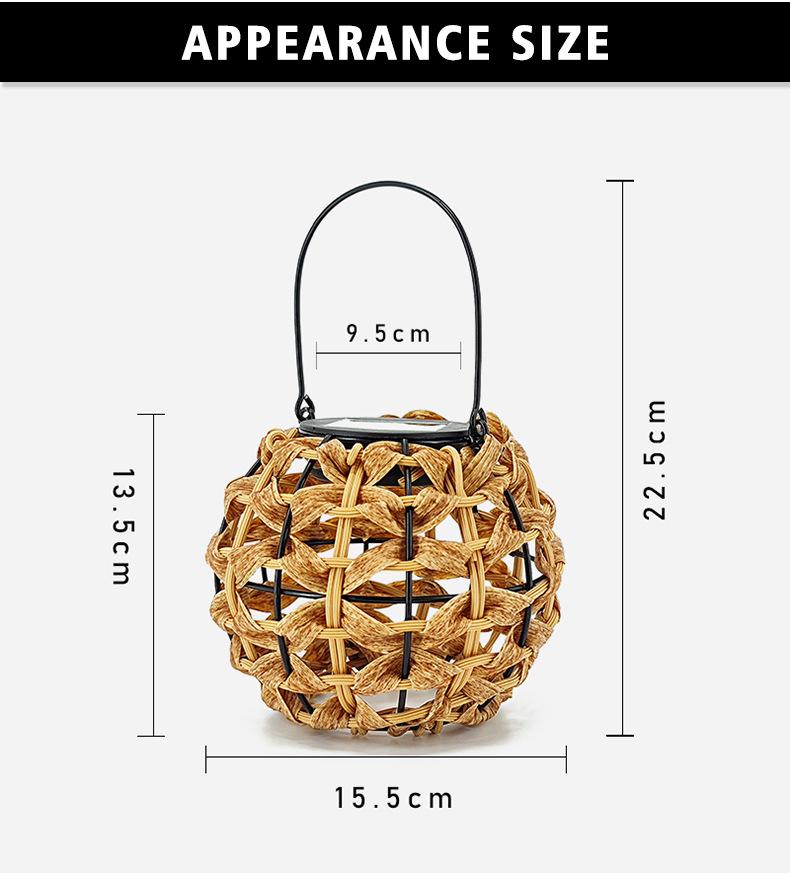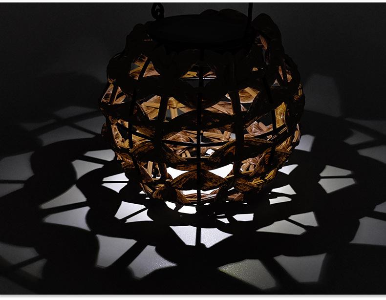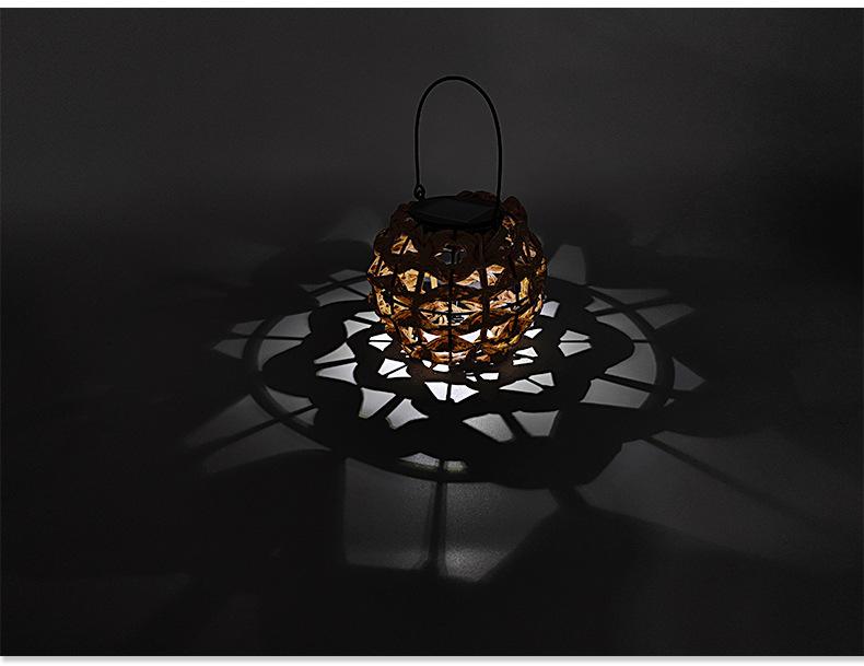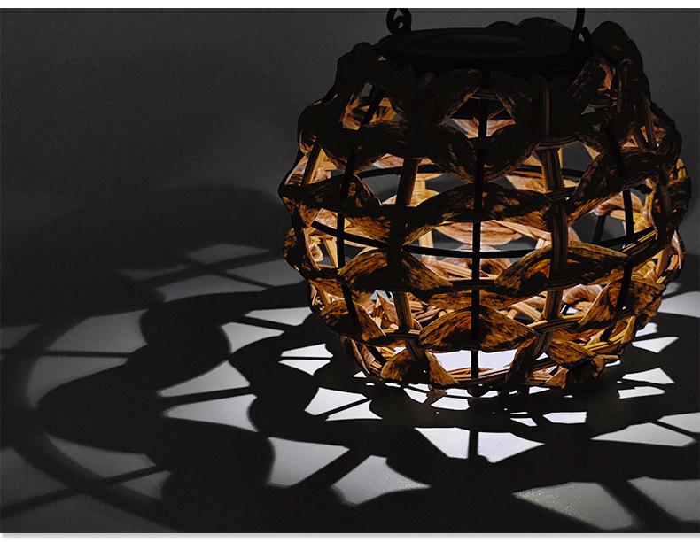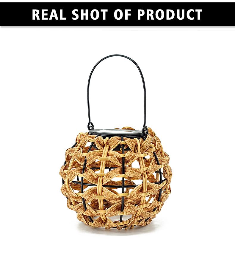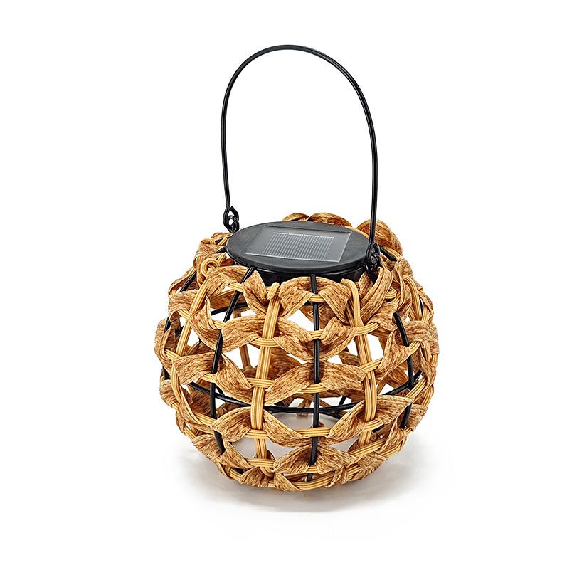 Lámpara de camping portátil estilo antiguo solar serie casa de té moderna esférica ambiente romántico ratán linterna LED