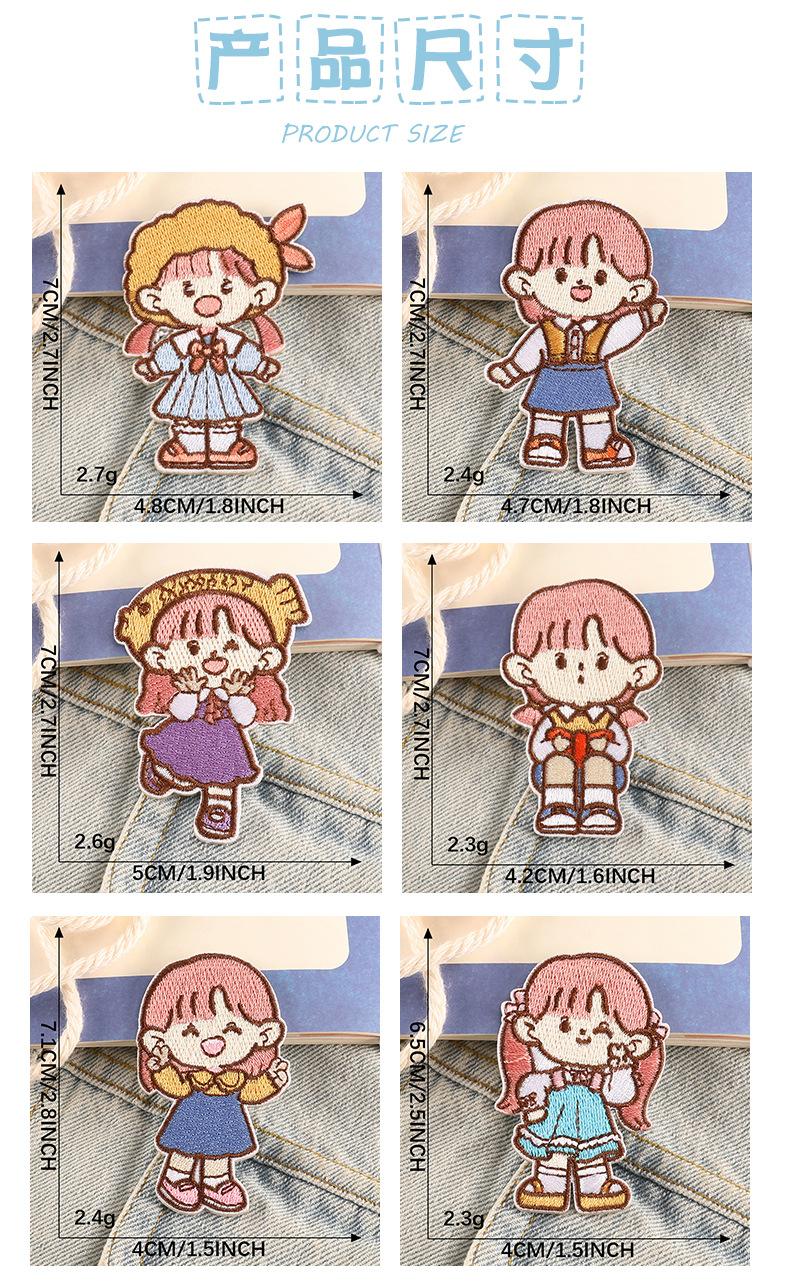 Pegatinas bordadas originales con dibujos de niña pequeña, accesorios de ropa, insignia, logotipo, etiqueta decorativa de tela, pegatinas autoadhesivas de tela DIY
