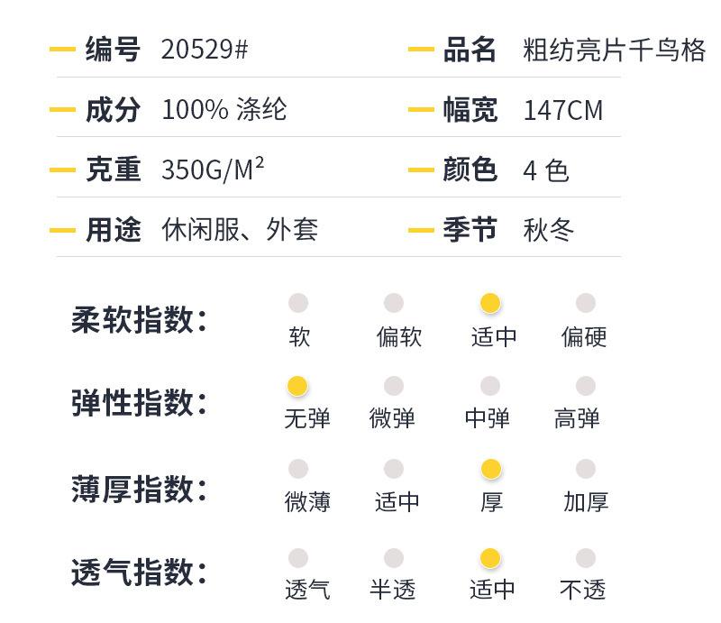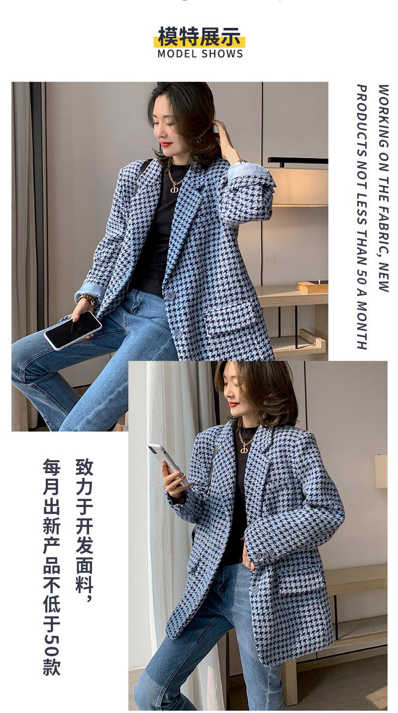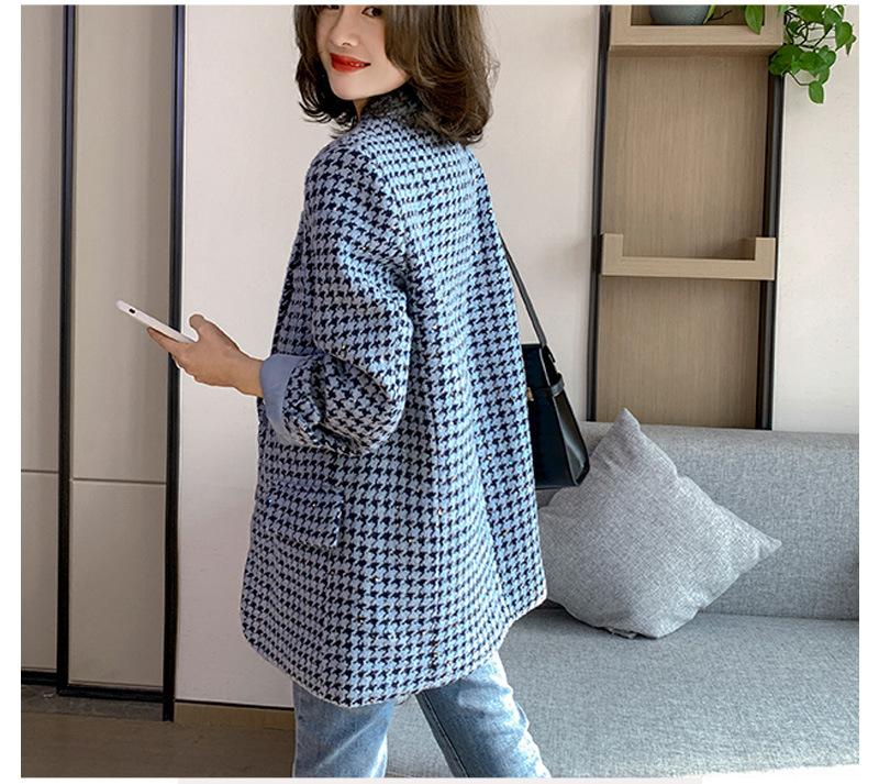 Nuevo abrigo de ropa casual de otoño e invierno de pata de gallo con lentejuelas de lana de 350 g, ropa de moda en tela, en stock al por mayor