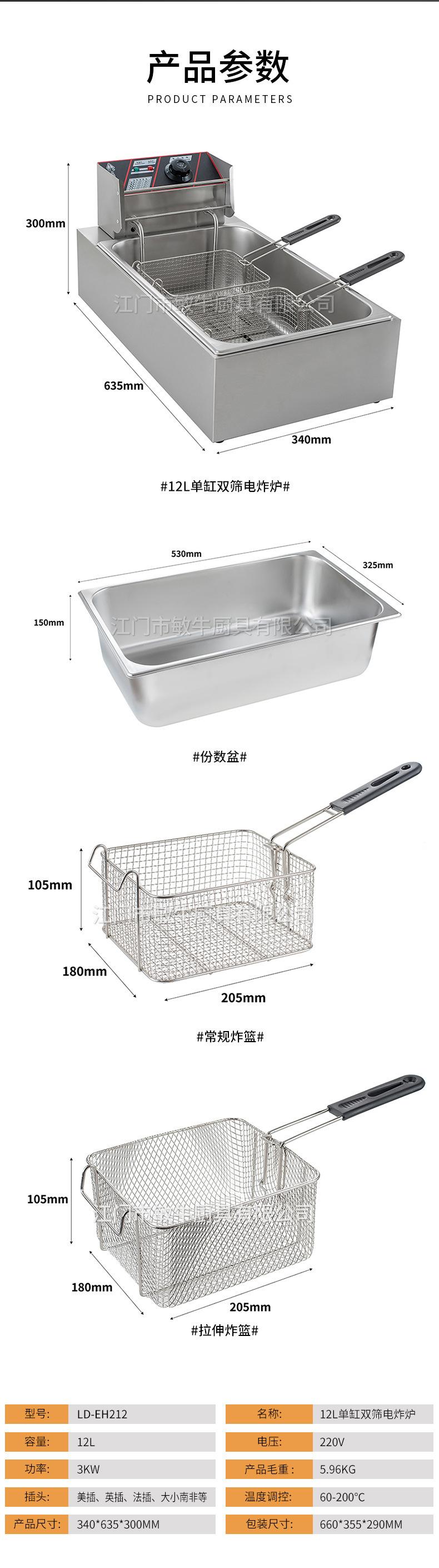 Olla eléctrica para freír transfronteriza Min Niu, de 12 l, con un solo cilindro y doble tamiz, de gran capacidad, para freír pollos.