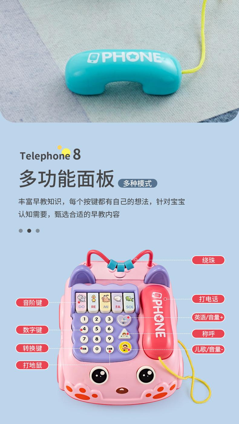Teléfonos de juguete para niños de 0-1-3 años, bebé hámster historia simulación piano música cuerda de remolque teléfono venta al por mayor