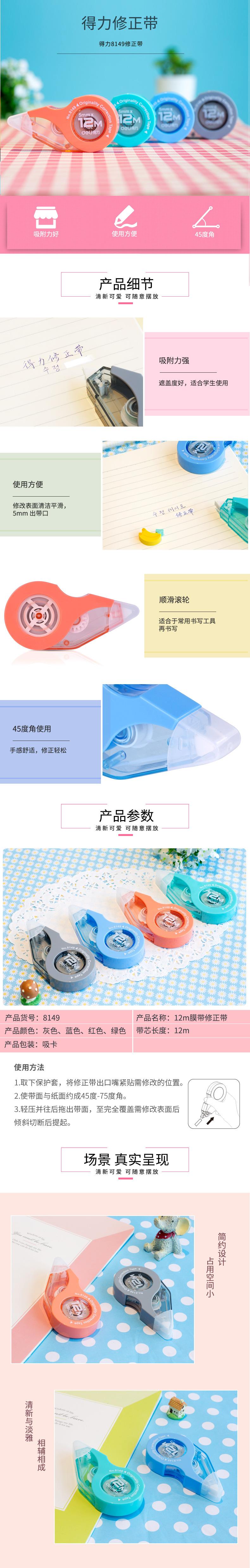 Papelería Deli al por mayor 8149 Cinta correctora 5 mm de ancho 12 m de largo Suministros para estudiantes Cinta correctora suave