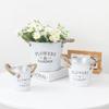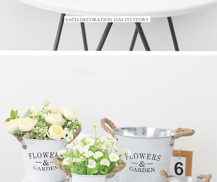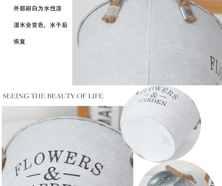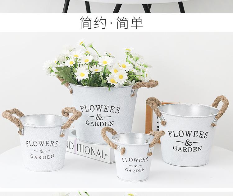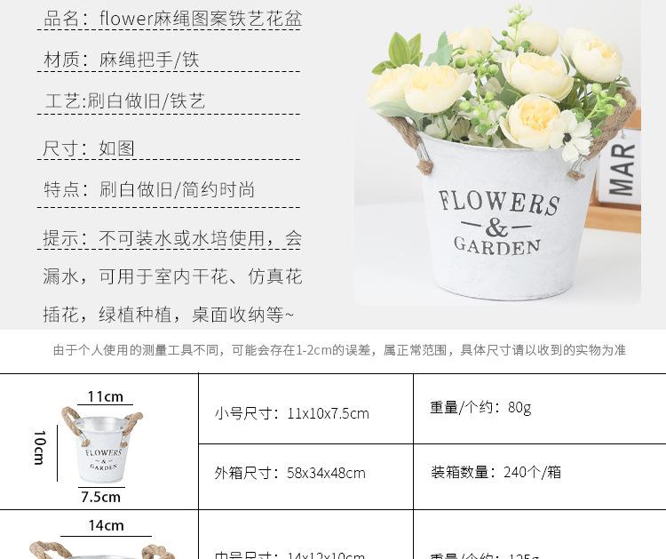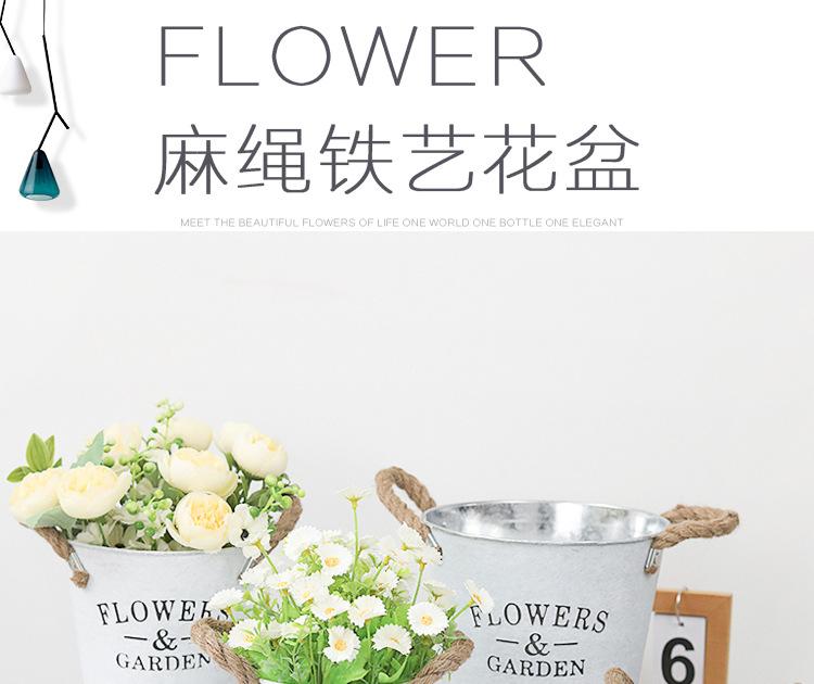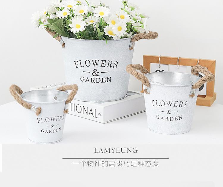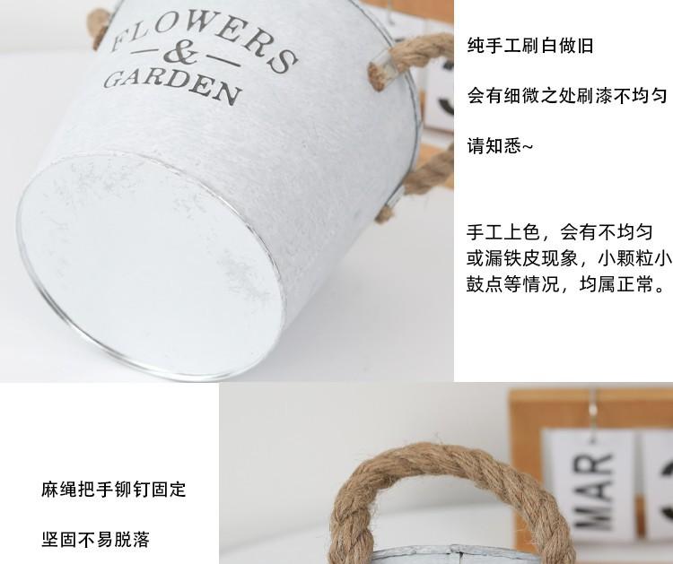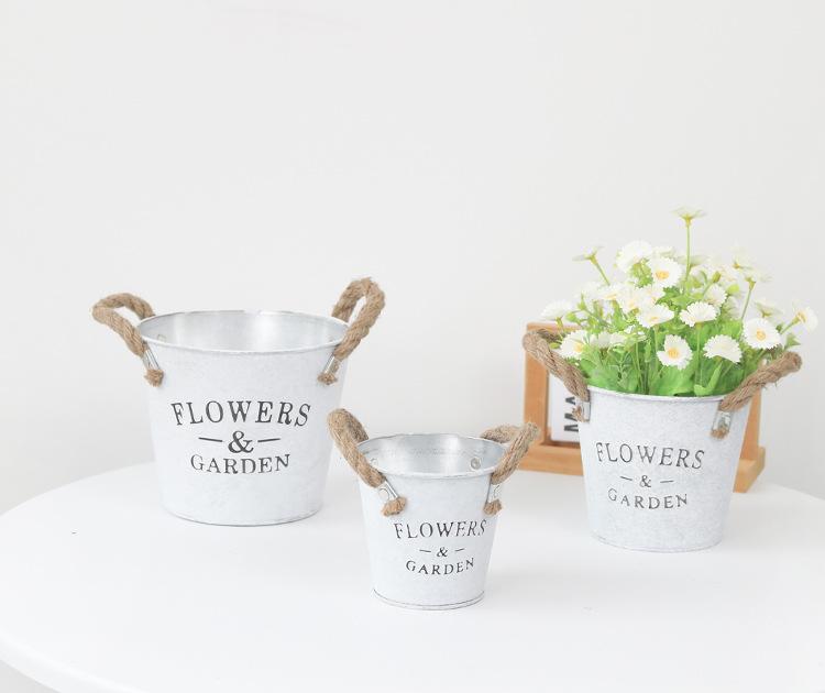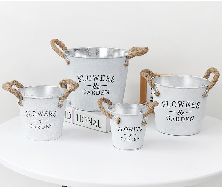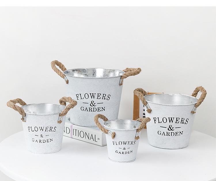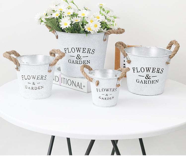 Maceta antigua vintage de cuerda de cáñamo cepillada blanca para balcón, plantación creativa, maceta verde carnosa, maceta redonda de hierro con letras