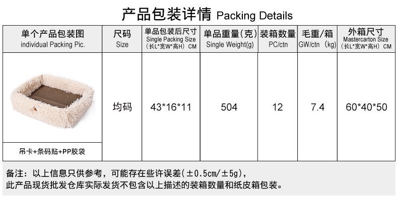 Tamaño del embalaje: Tela de fieltro 43*16*11CM Felpa: 43*16*11CM Rascador para gatos: 43*16*6CM