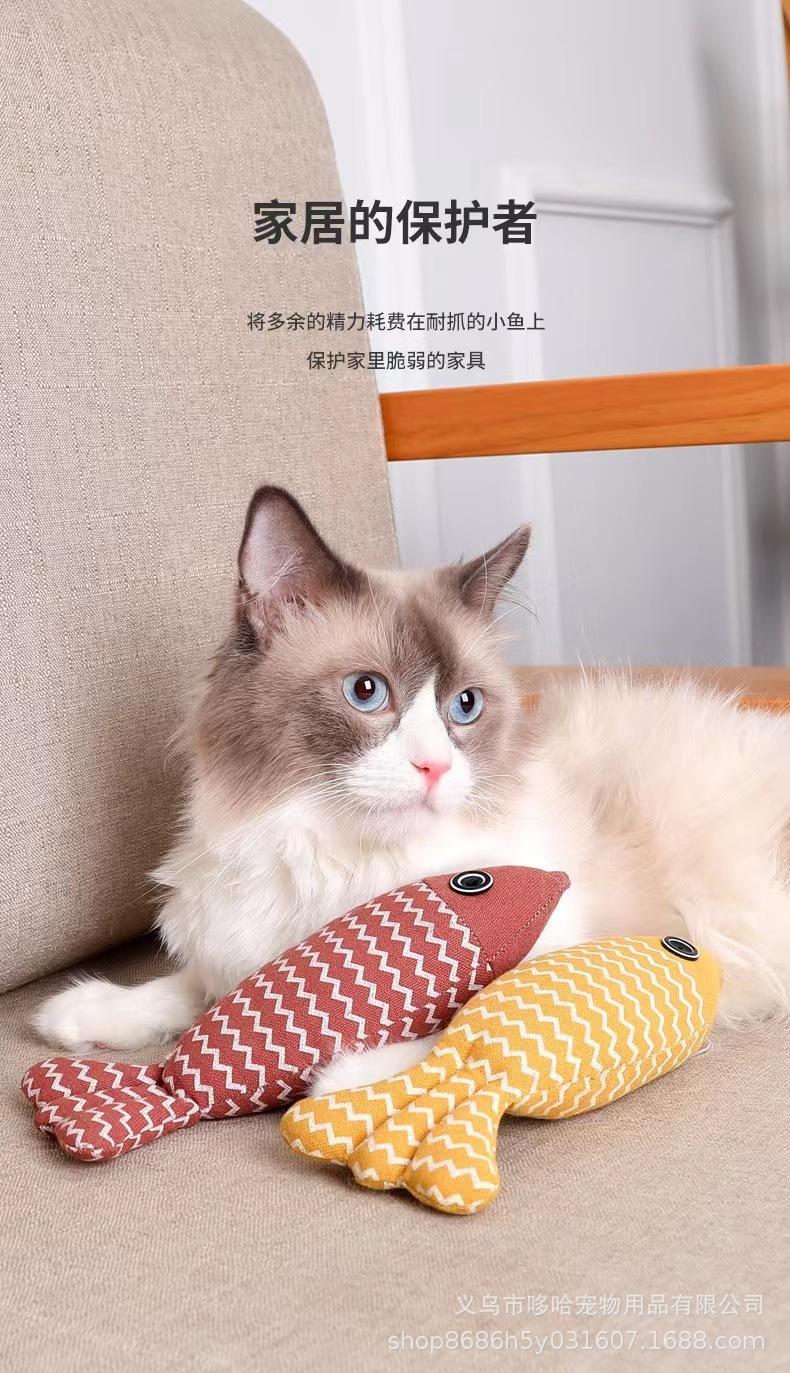 Nuevo juguete para mascotas transfronterizo juguete para gatos almohada de pez de lino muñeco de hierba gatera auto-Hi suministros para mascotas