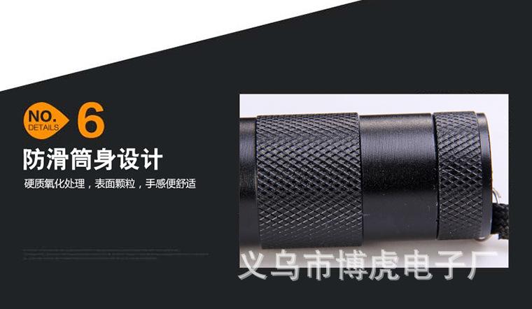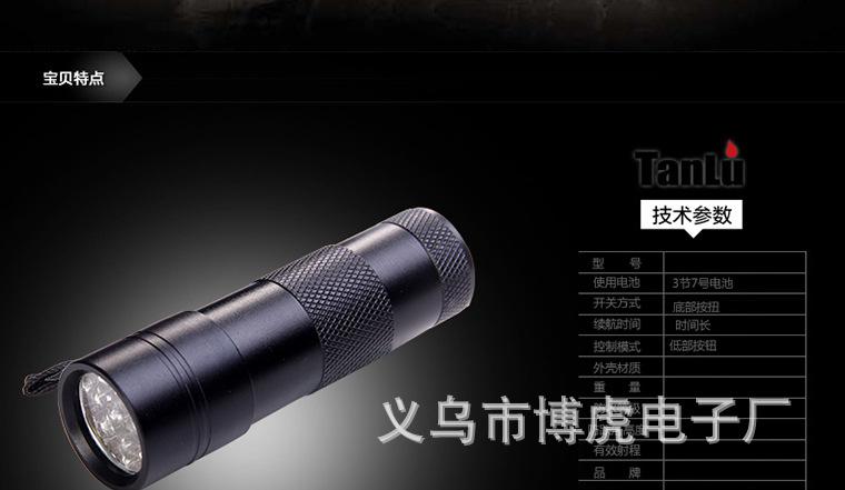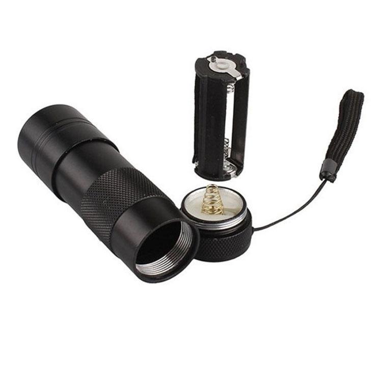 2. (La versión estándar no incluye pilas; debe instalar tres pilas AA usted mismo). Preste atención a los polos positivo y negativo de las pilas AA. Si la luz es tenue, reemplace las pilas.La longitud de onda de esta lámpara UV es de 395 nm