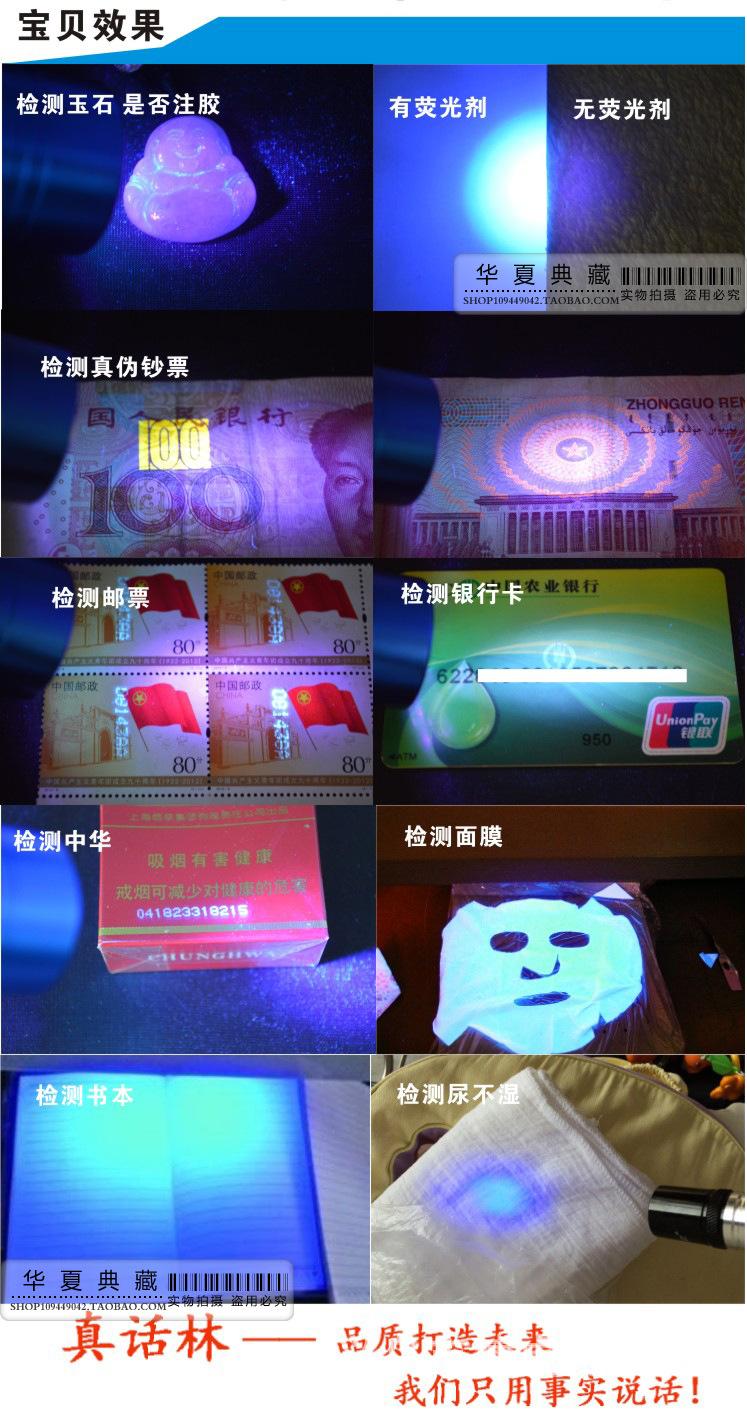 1. Presione el interruptor en la parte posterior de la linterna a púrpura. La lámpara puede verificar la autenticidad.