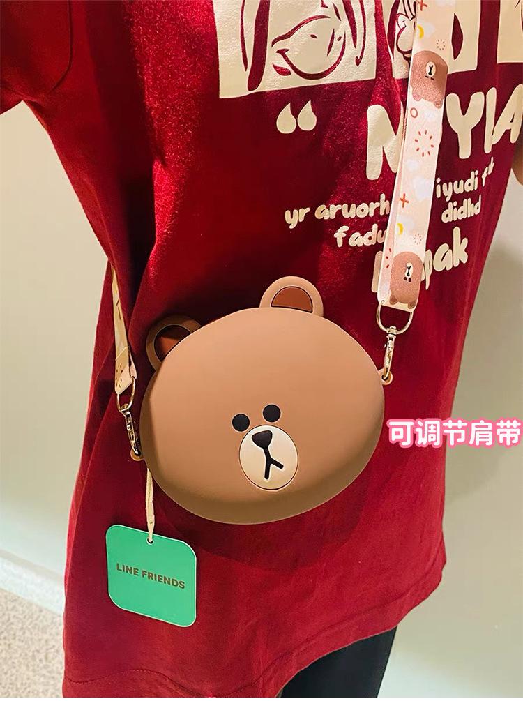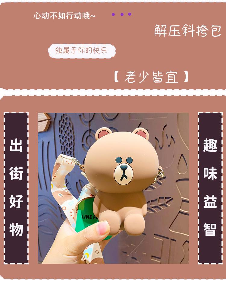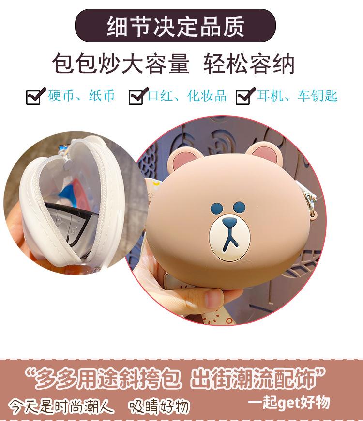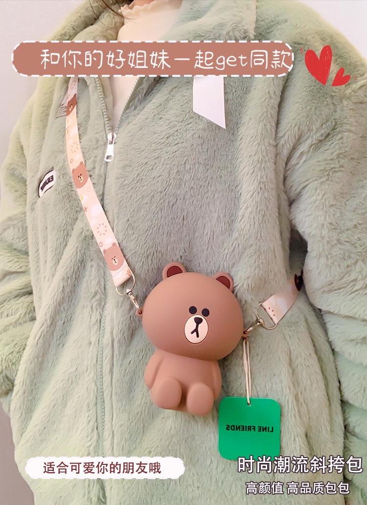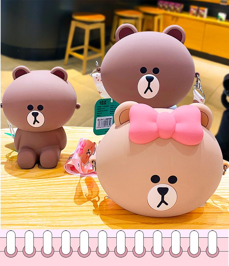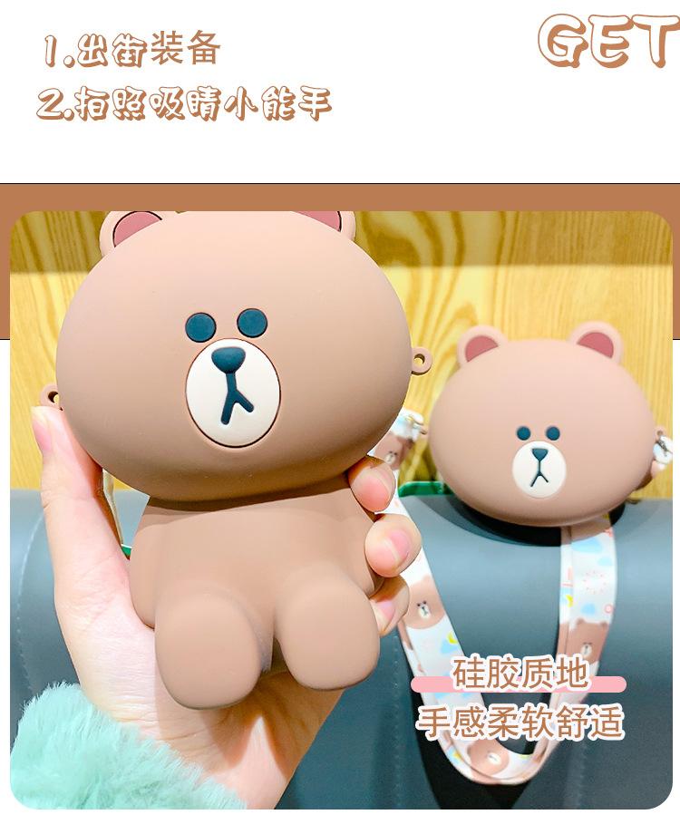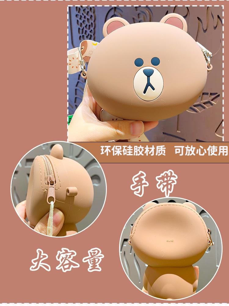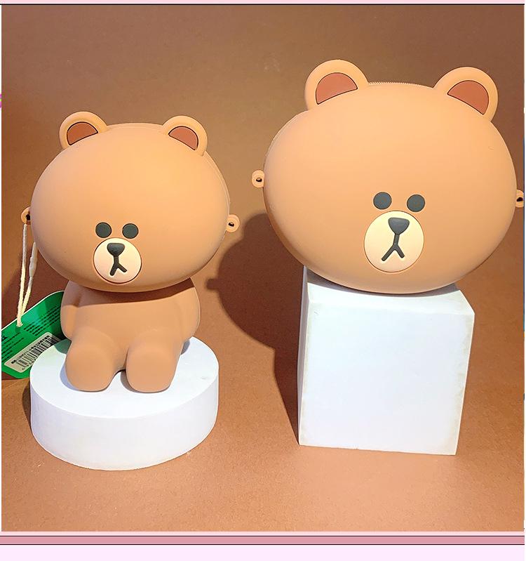 Bolso bandolera con diseño de oso pardo de dibujos animados, bolso de hombro portátil creativo, bolso de almacenamiento para cambio de niños, pequeño regalo al por mayor