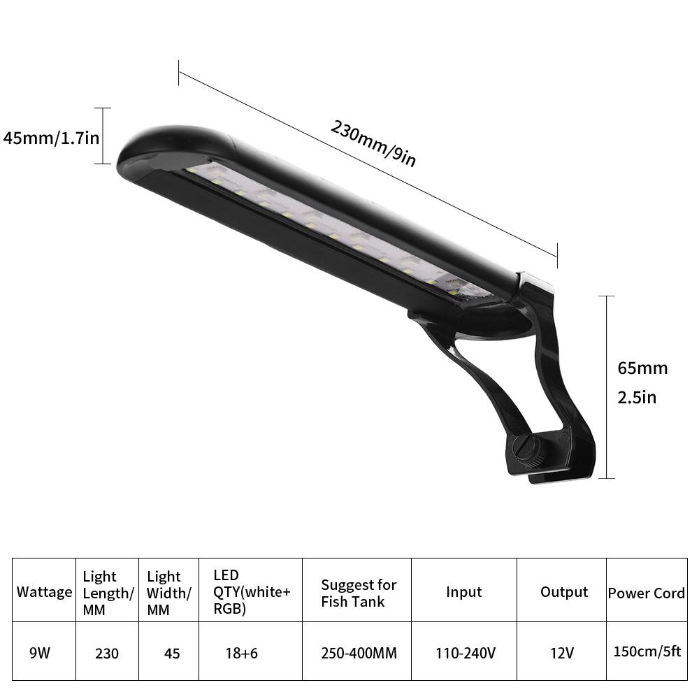 Luz de clip LED de espectro completo para plantas acuáticas, adecuada para una variedad de peceras.