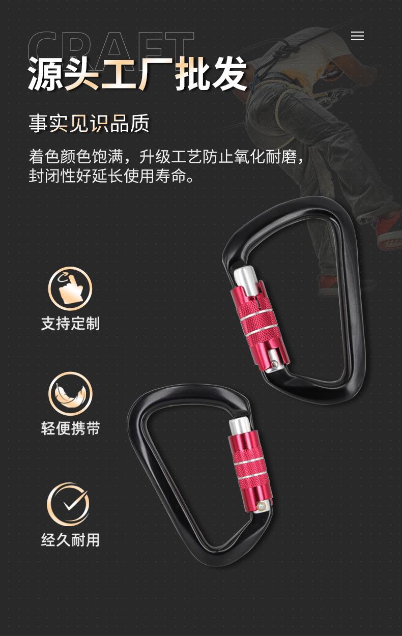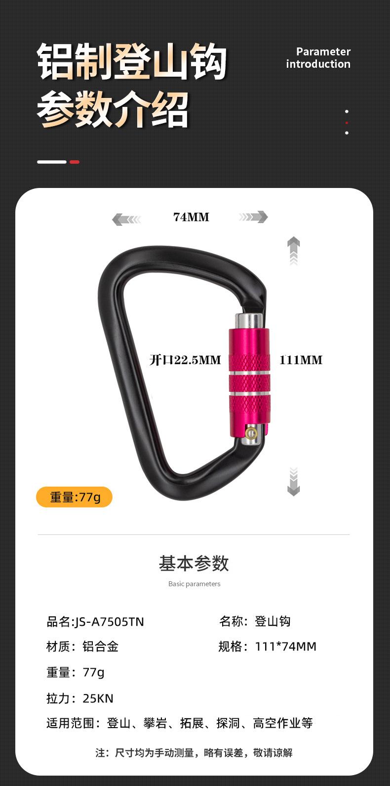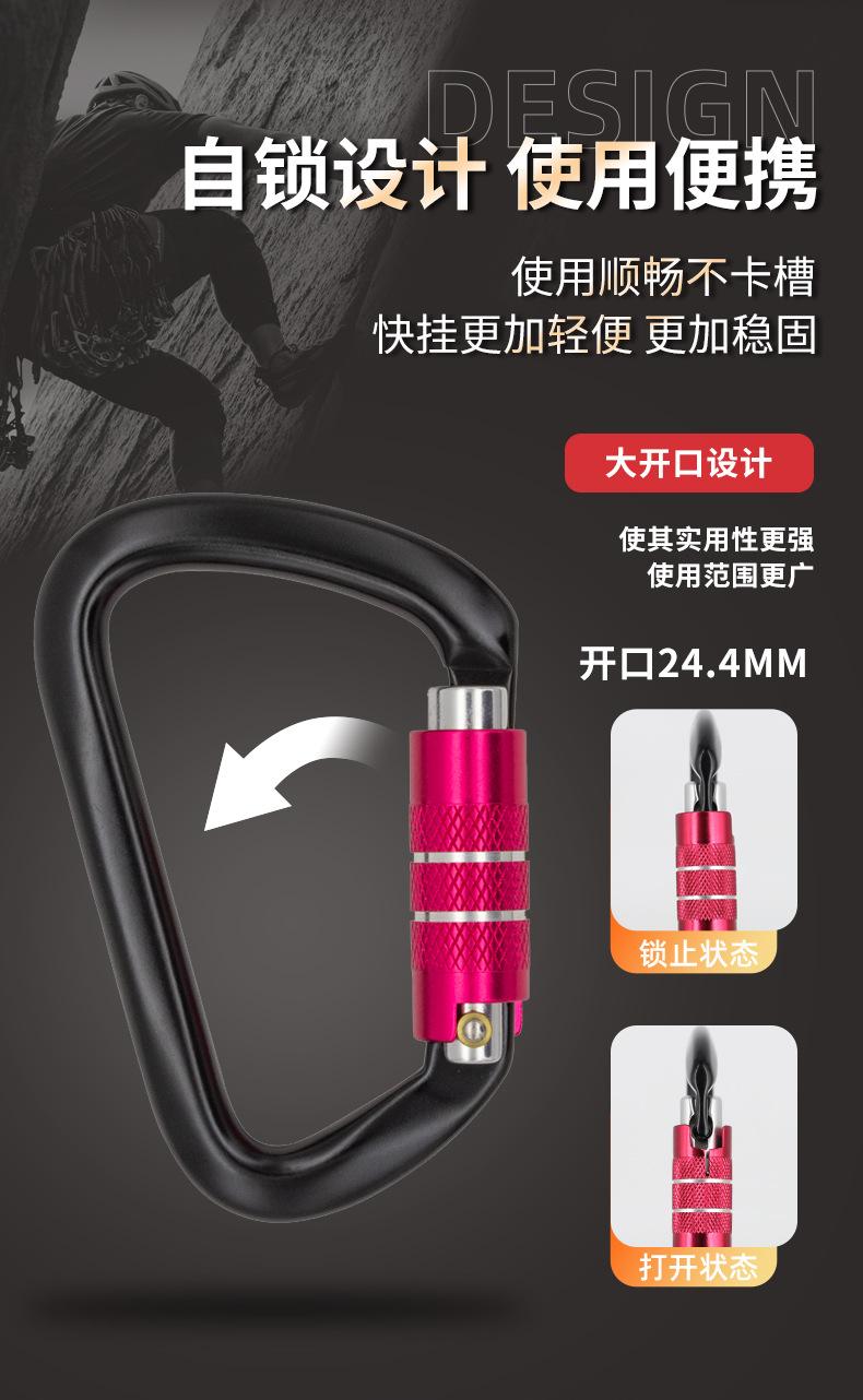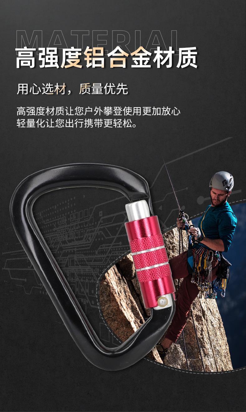 Bloqueo principal de alpinismo con expansión de escalada en roca, bloqueo de tornillo ultraligero tipo D, bloqueo de suministros de suspensión rápida, hebilla de seguridad, gancho de seguridad