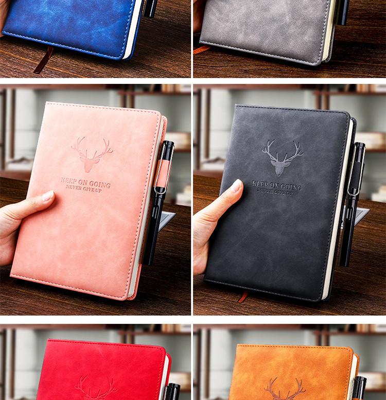 Compra Cuaderno Diario Cabeza de Ciervo A5 Extra Grueso Encuadernado en Cuero Estilo Empresarial Planificador Ins-Style para Estudiantes Universitarios con Portalápices al por mayor en Joom.pro