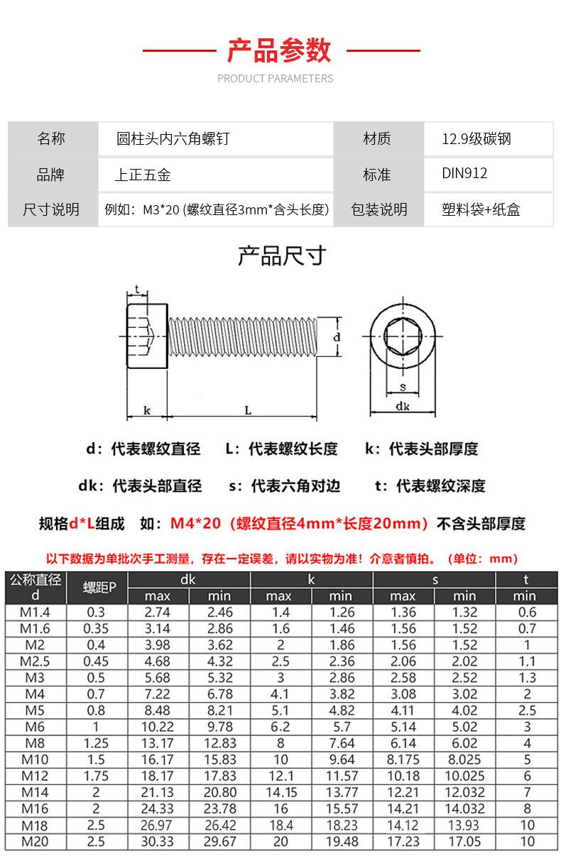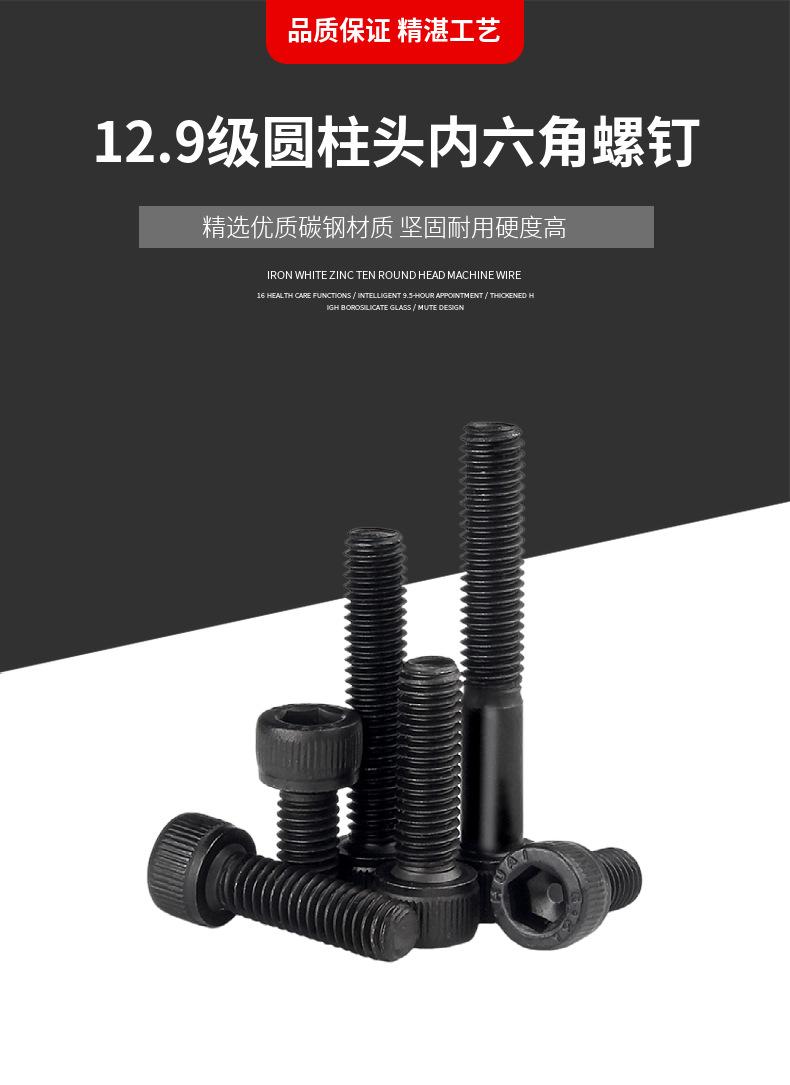Tornillo de cabeza hueca hexagonal de grado 12.9, tornillo de cabeza hueca cilíndrica de acero al carbono de alta resistencia, perno negro DIN912