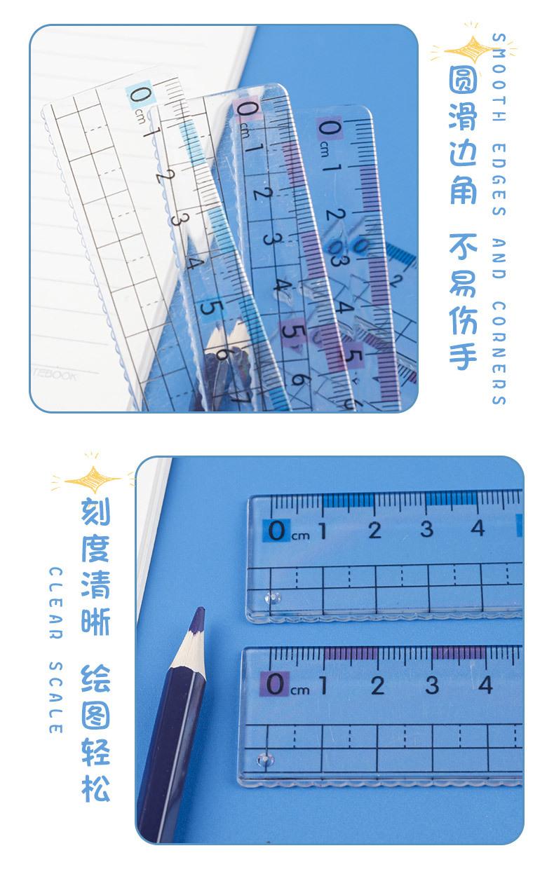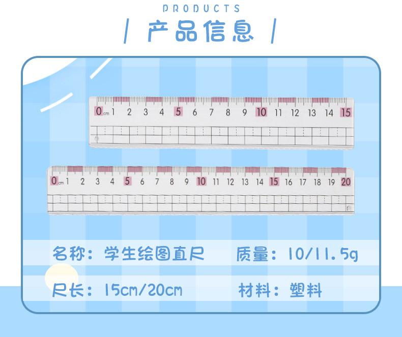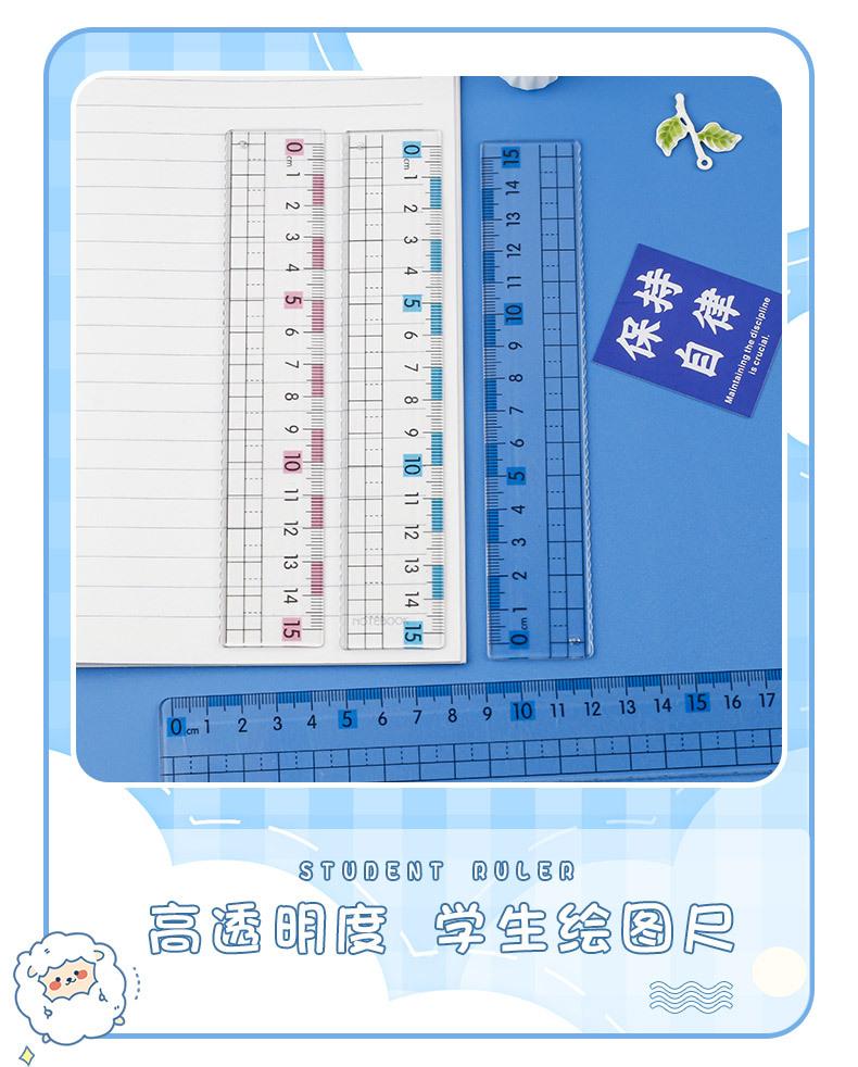 Regla para miopía de gran venta de fábrica con línea ondulada para estudiantes de primaria, regla transparente de escala digital grande de 20 cm y 15 cm.