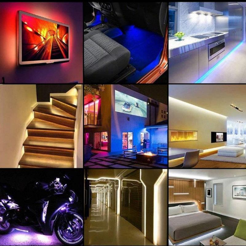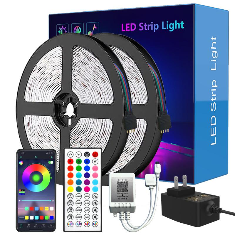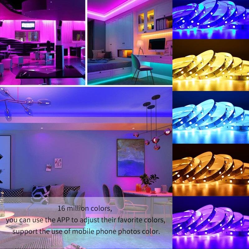 Tira de luces LED Bluetooth Autoadhesiva 5050 Colorida RGB Atmósfera Inteligente Flexible Bajo Voltaje 12V Juego de Tira de Luces Alto Brillo