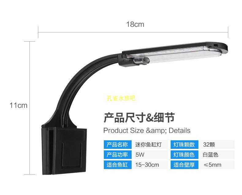 Luz LED simple con clip para acuario, iluminación para plantas acuáticas, luz LED para acuario, cubierta impermeable para pecera