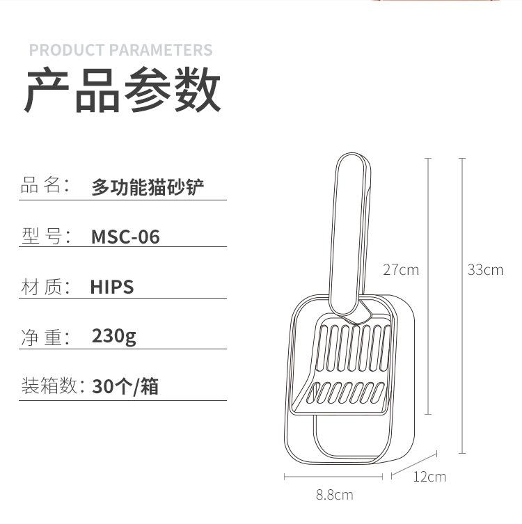 Nombre del producto: Pala multifuncional para arena para gatos.