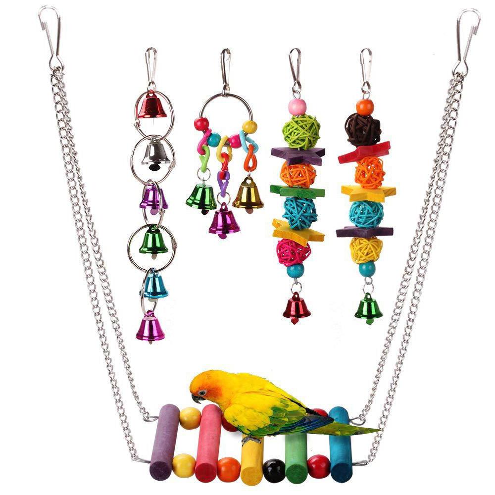 Juguete para loro 5 piezas Colgante para jaula de pájaro loro 5 piezas Estrella de cinco puntas bola de ratán cuerda campana columpio puente colgante columpio