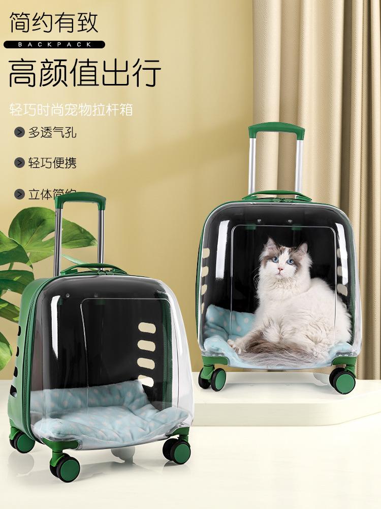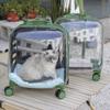 Maleta con ruedas para gatos, transparente, para llevar al salir, portátil, transpirable, de gran capacidad, con burbujas, para transporte transfronterizo.