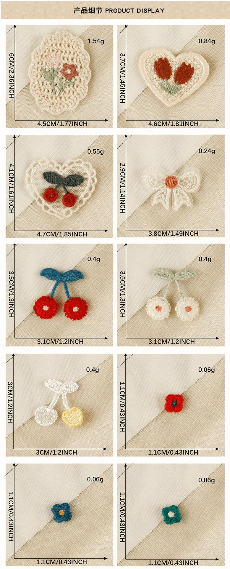 [Nota] Los parches con lentejuelas, cuentas, pedrería, flores de seda, bolas de pelo y bordados con hilo metálico deben plancharse primero por detrás y luego recortarse por delante, una vez fijados firmemente. Esto evitará dañar las lentejuelas u otros accesorios de la parte delantera. Mantenga la ropa (u otros textiles) seca y no rocíe agua sobre los parches de tela ni sobre la ropa con la plancha al plancharlos. Una vez planchado, el parche de tela generalmente se adhiere bien a la ropa (u otros textiles) durante mucho tiempo. Si el parche se desprende después de un tiempo o después del lavado, significa que la temperatura de la plancha es demasiado baja o el tiempo de planchado es demasiado corto. Puede repetir la operación original y planchar el parche de nuevo.