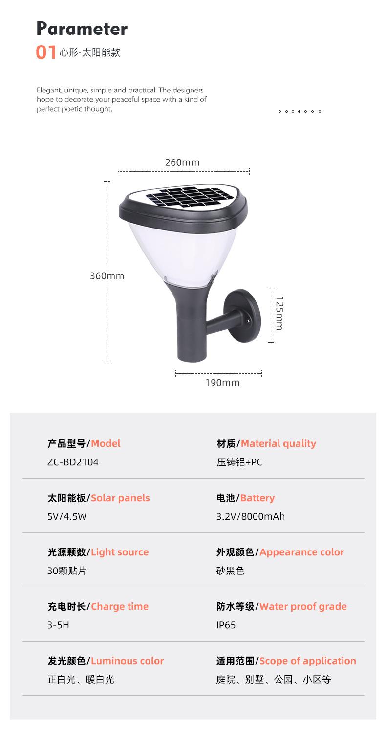 Lámpara de Pared Solar Impermeable para Exterior en Forma de Corazón Lámpara de Pared para Patio de Villa Hogar Lámpara de Valla para Jardín