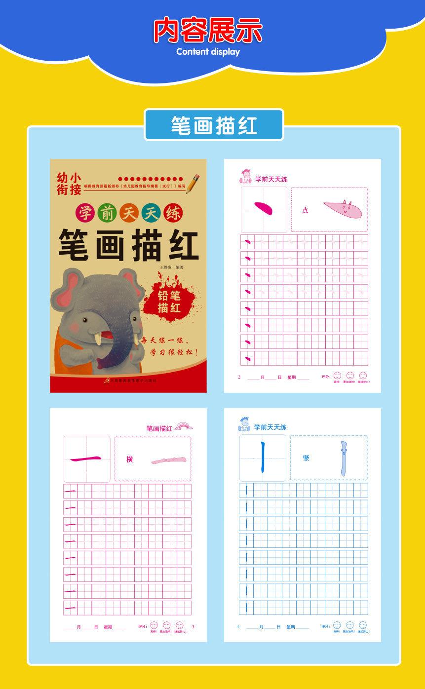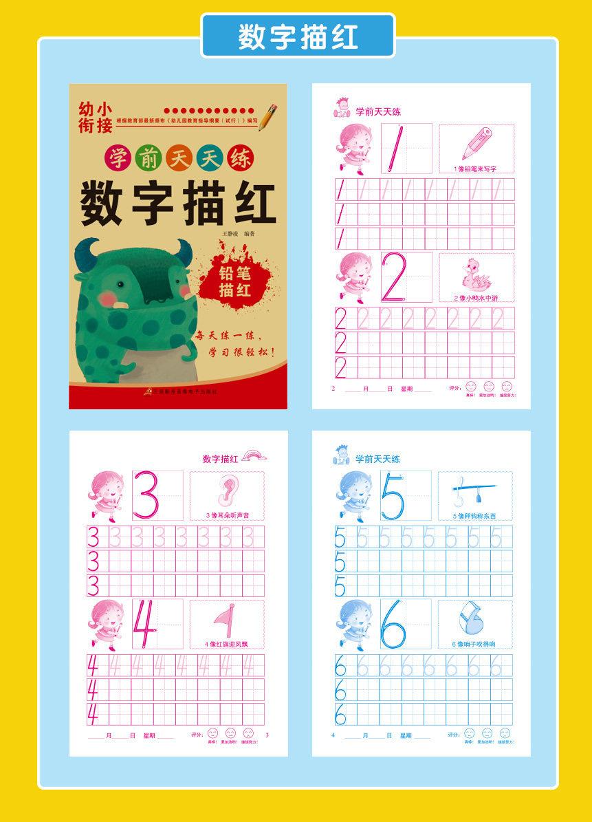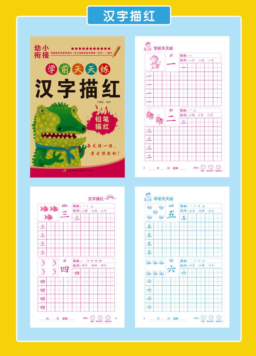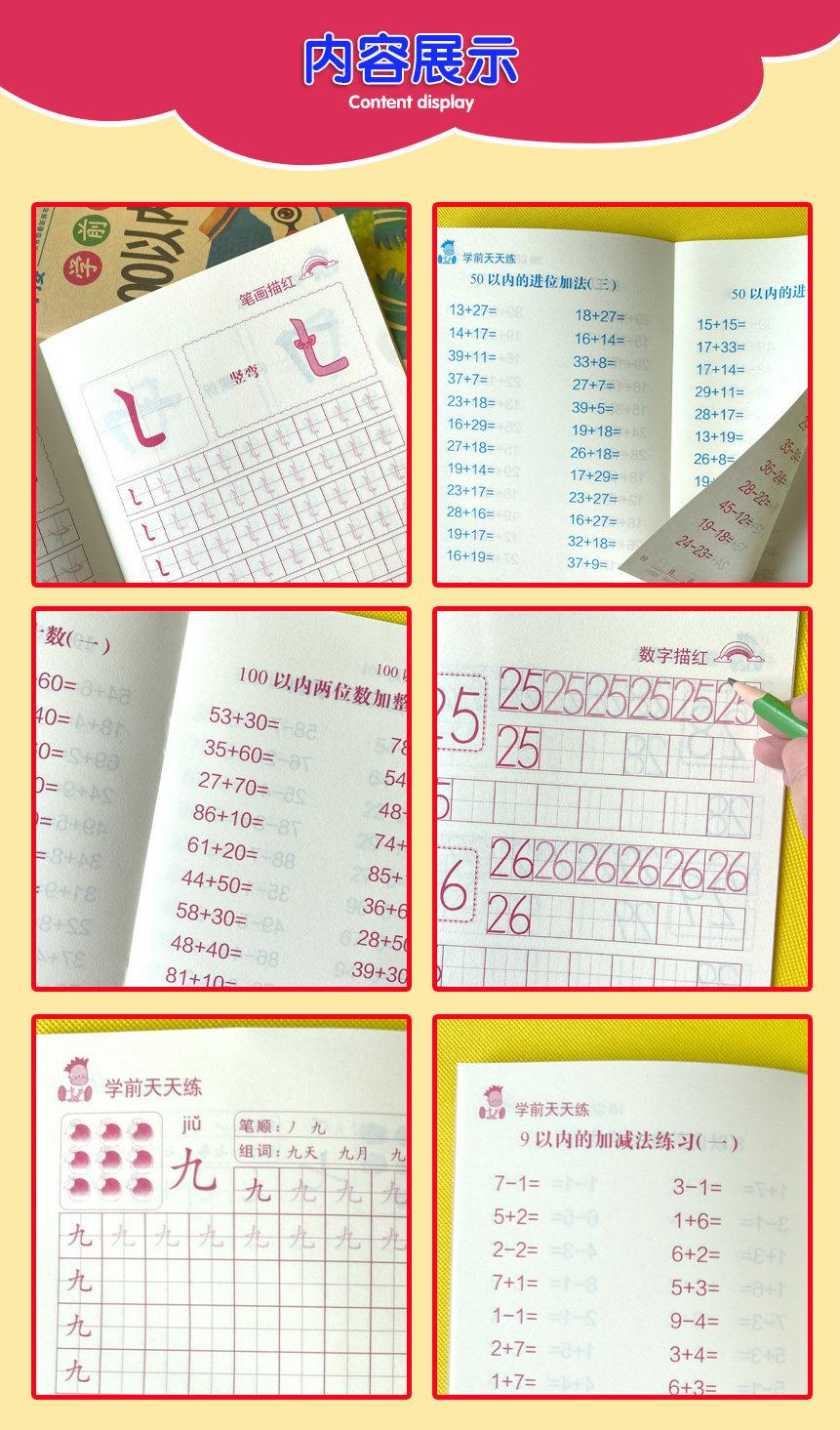 Trazado con lápiz rojo Trazado con lápiz rojo para jardín de infantes Práctica de pinyin, caracteres chinos, números, trazos en inglés, rango de trazos, escritura de suma y resta