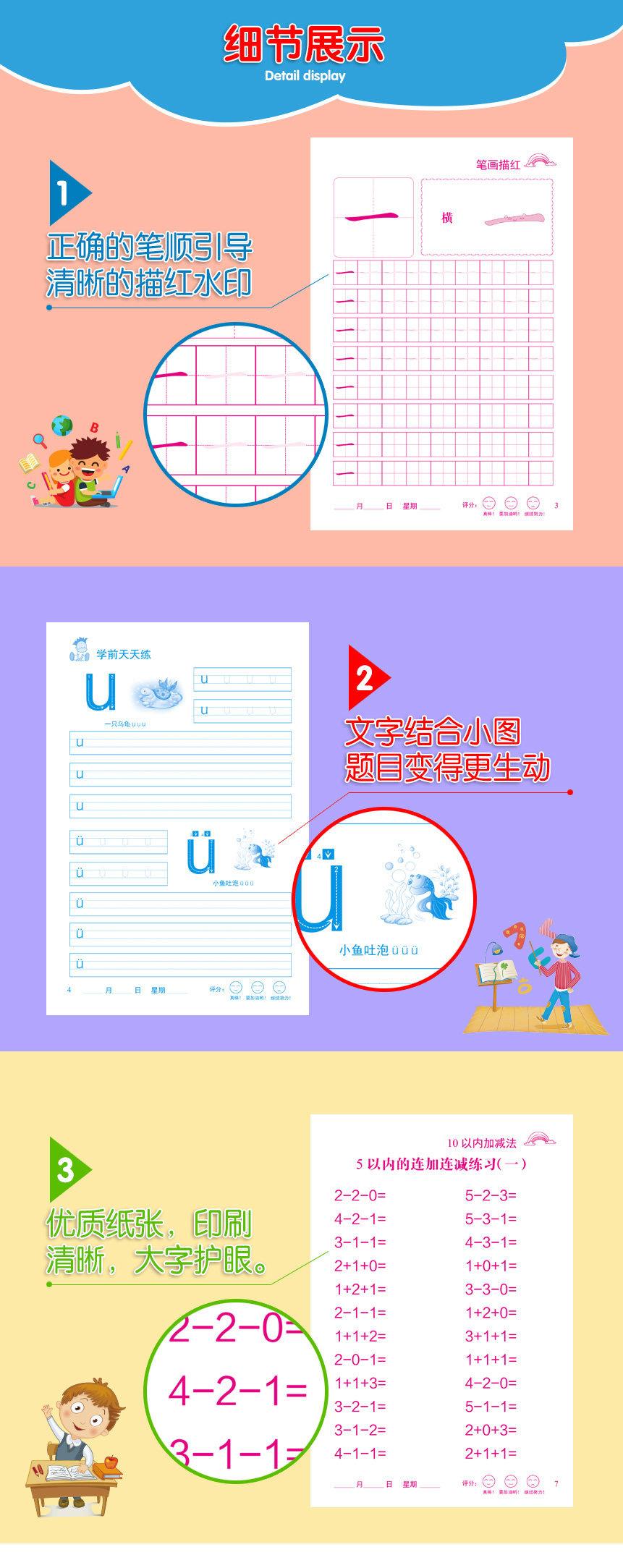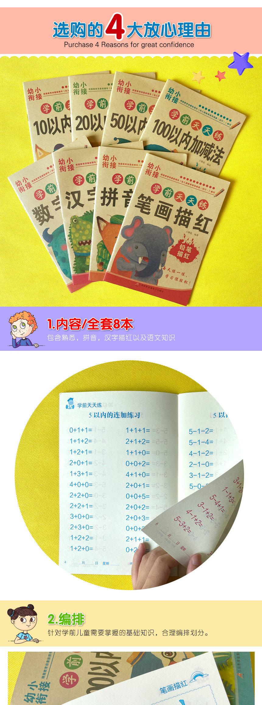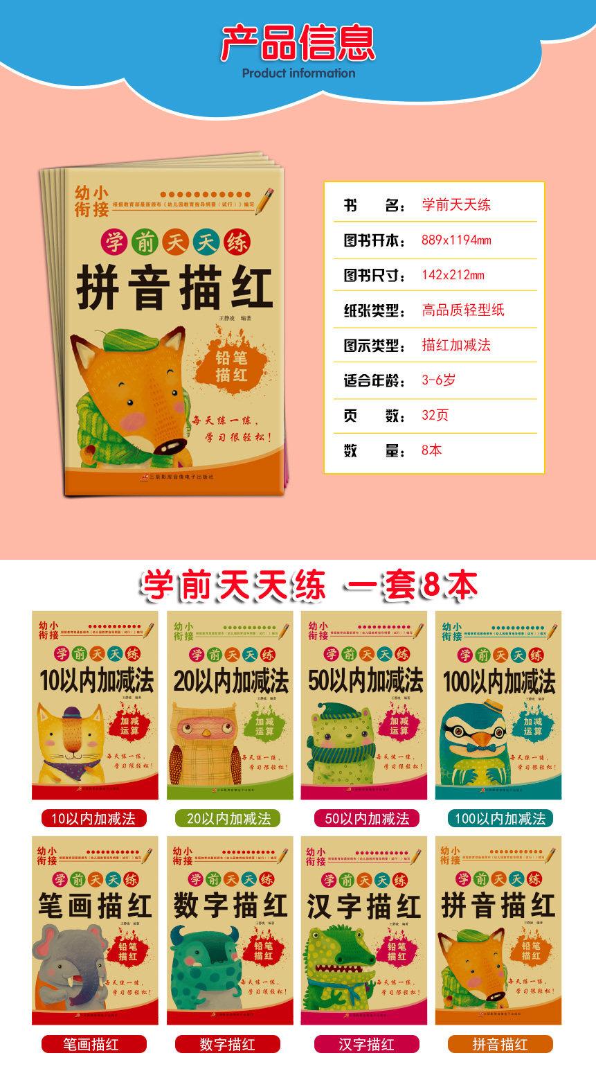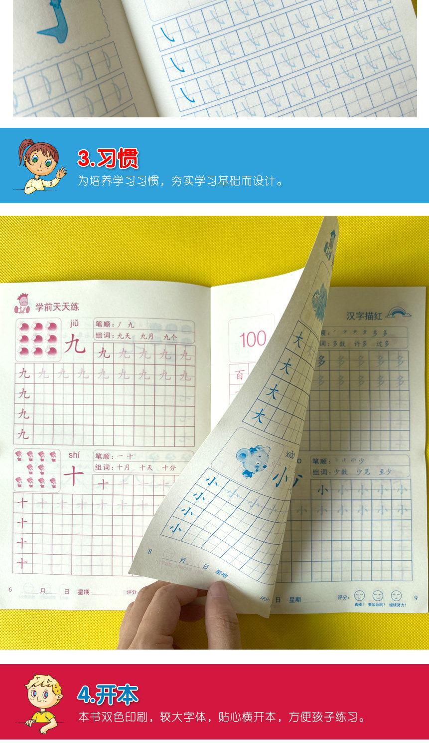 Trazado con lápiz rojo Trazado con lápiz rojo para jardín de infantes Práctica de pinyin, caracteres chinos, números, trazos en inglés, rango de trazos, escritura de suma y resta