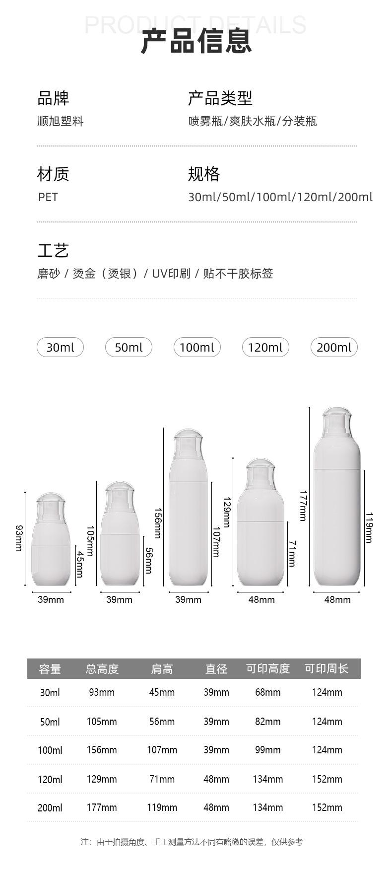 30ml; white; pet, 50ml; white; pet, 100ml; white; pet, 120ml; white; pet, 200ml; white; pet