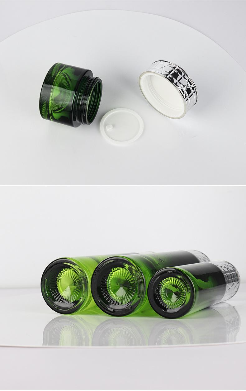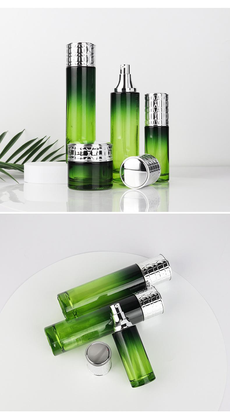 Botella de vidrio vacía para loción, esencia, agua, crema, prensa, bomba, fondo grueso, recta, redonda, de vidrio, material de embalaje cosmético