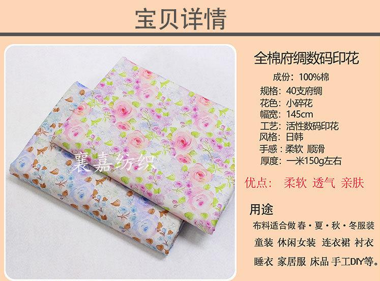 Tela de algodón lisa con estampado digital reactivo de pequeñas flores para ropa infantil, hecha a mano, para manualidades