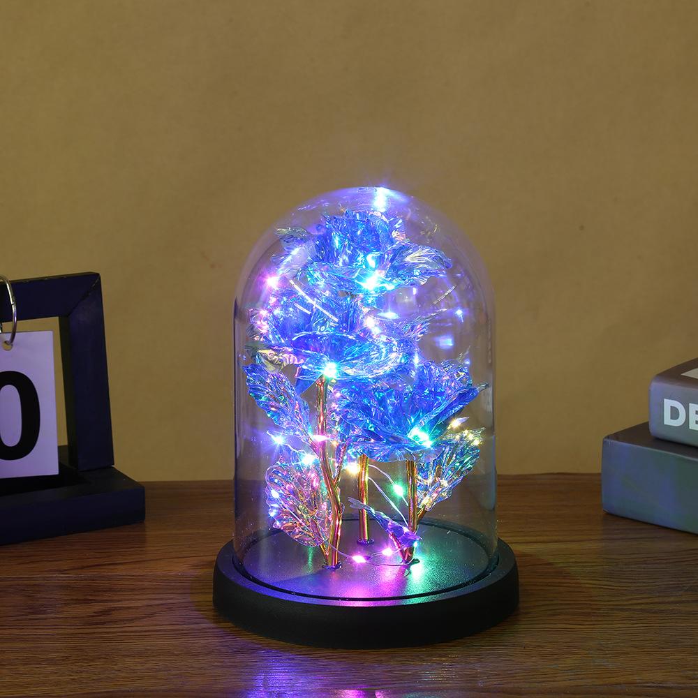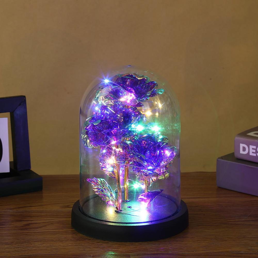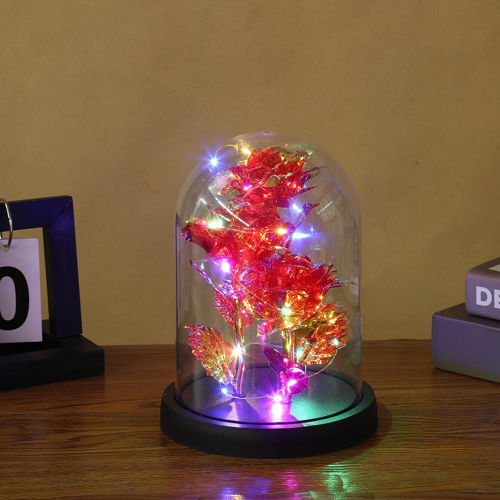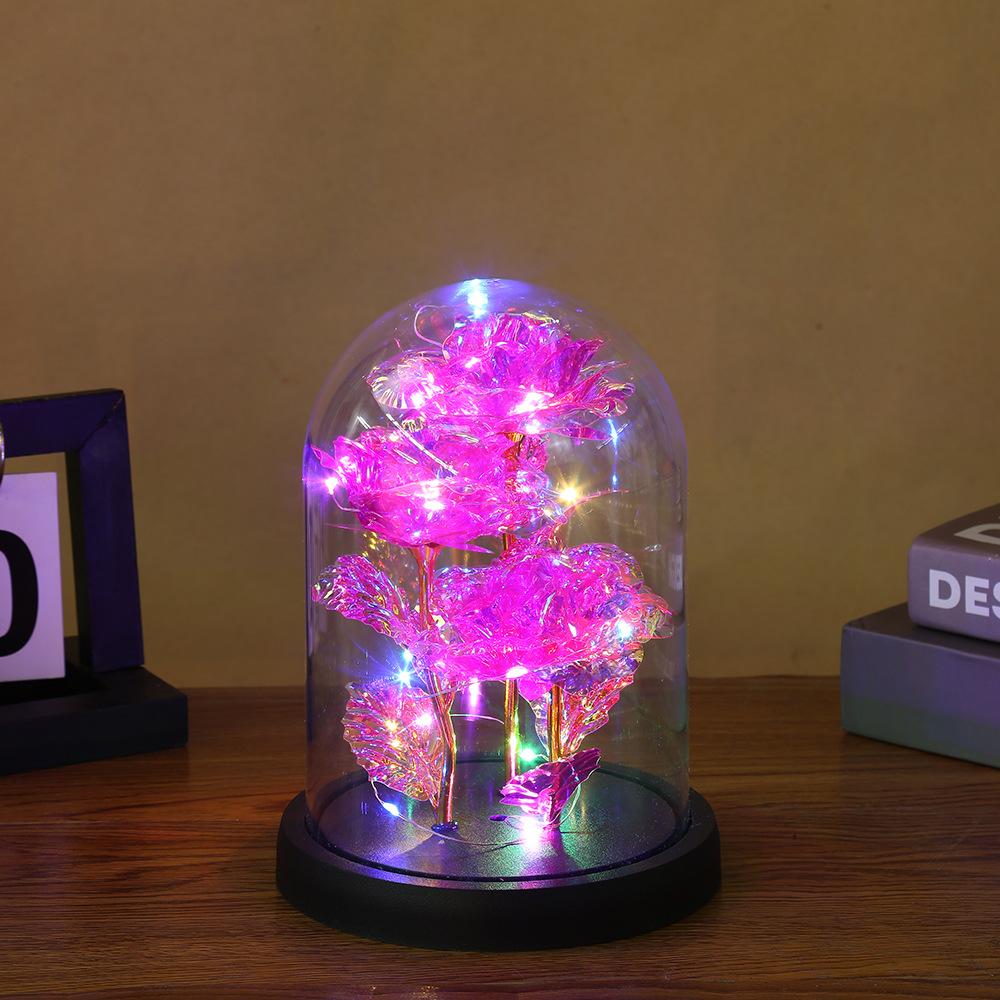 Nuevo Adorno de Escritorio con Luz LED de Rosa de Lámina de Oro Transfronterizo Cubierta de Cristal Regalo de San Valentín Exquisita Luz Nocturna
