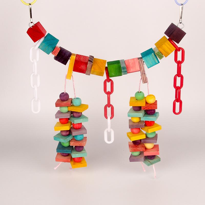 Compra Cadena de bloques de madera de color loro, puente colgante suave, juguete para loros, columpio para pájaros, escalera de 288 g al por mayor en Joom.pro