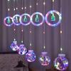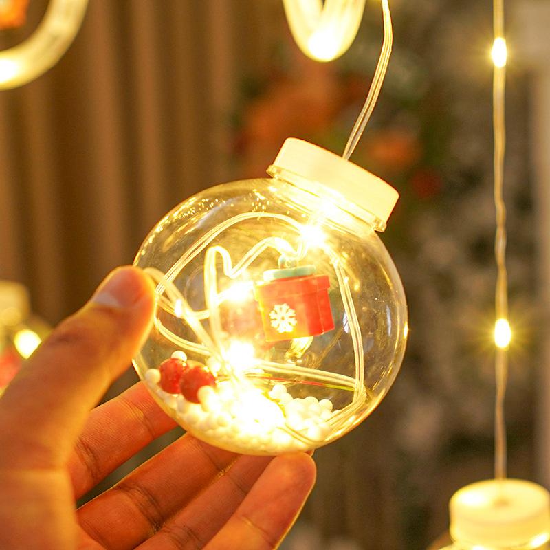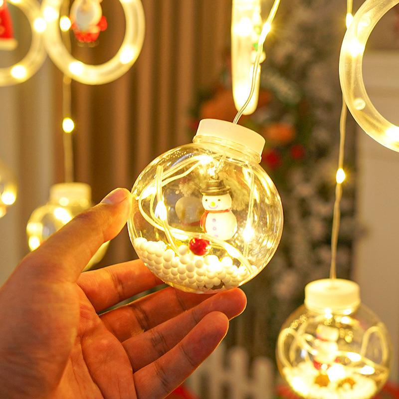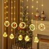 Cortina de luz LED de cuero con 8 funciones, transfronteriza, árbol de Navidad, Papá Noel, luces de colores, decoración cálida para habitación, Navidad