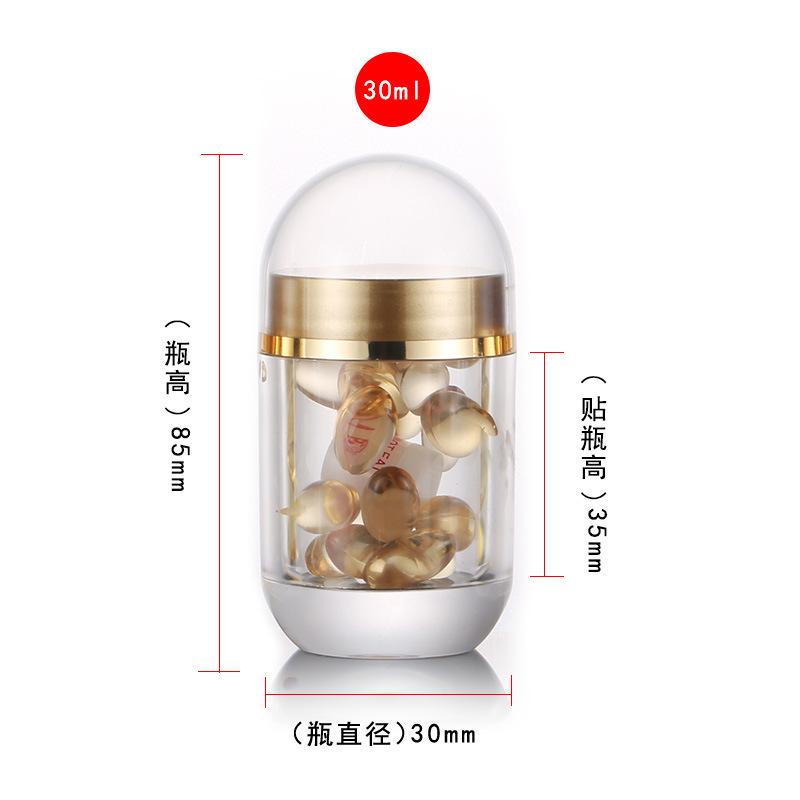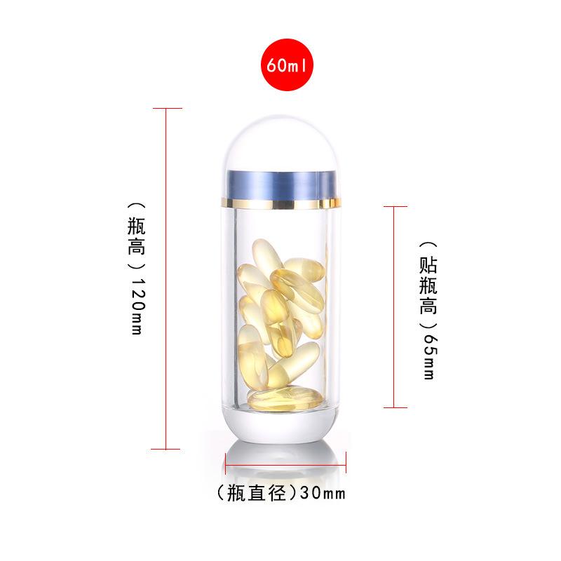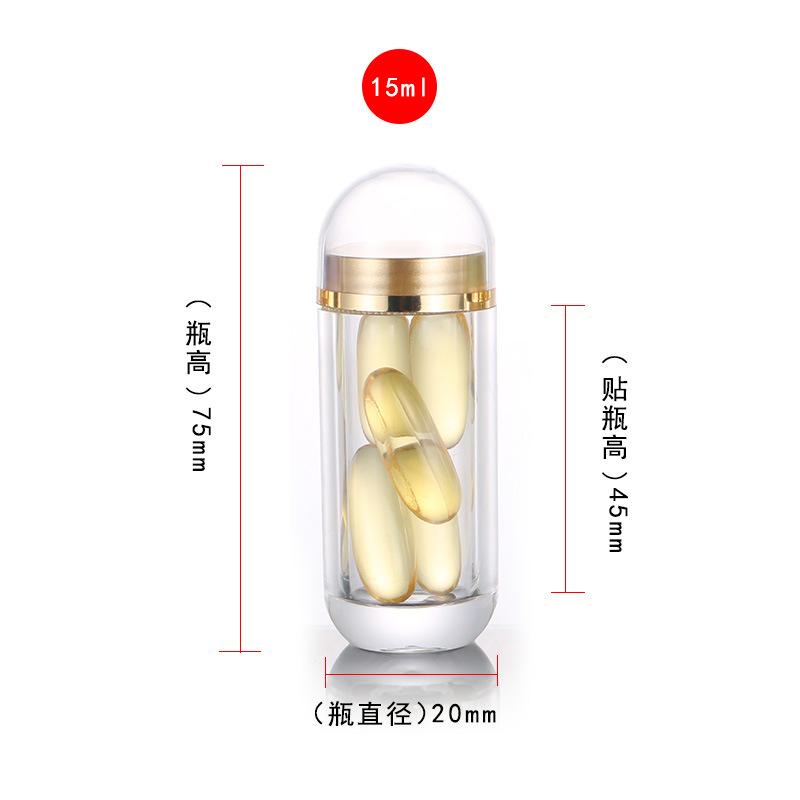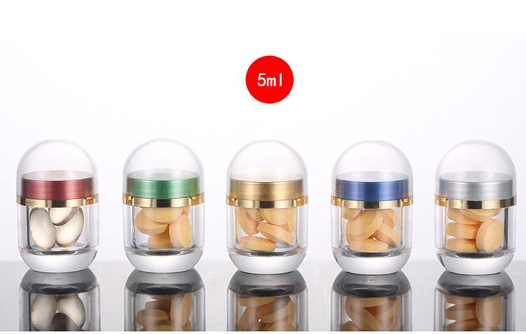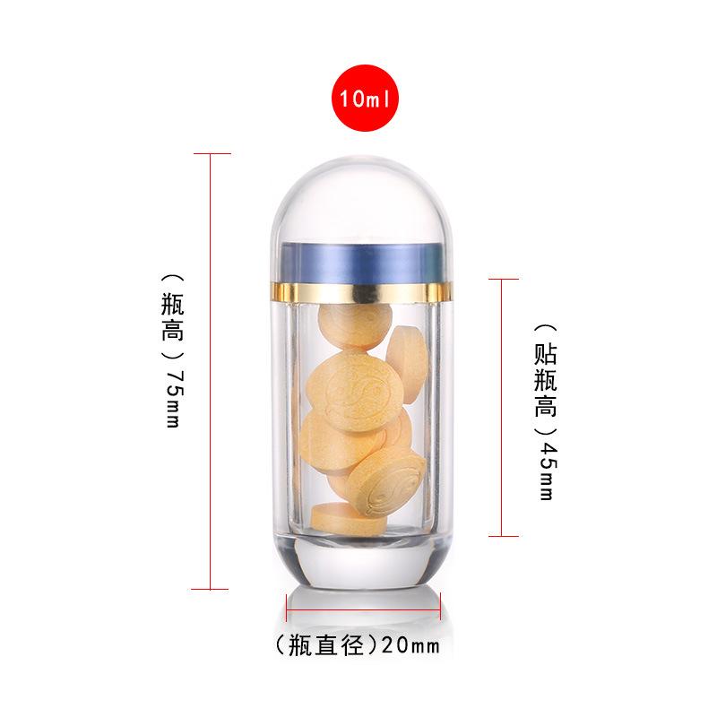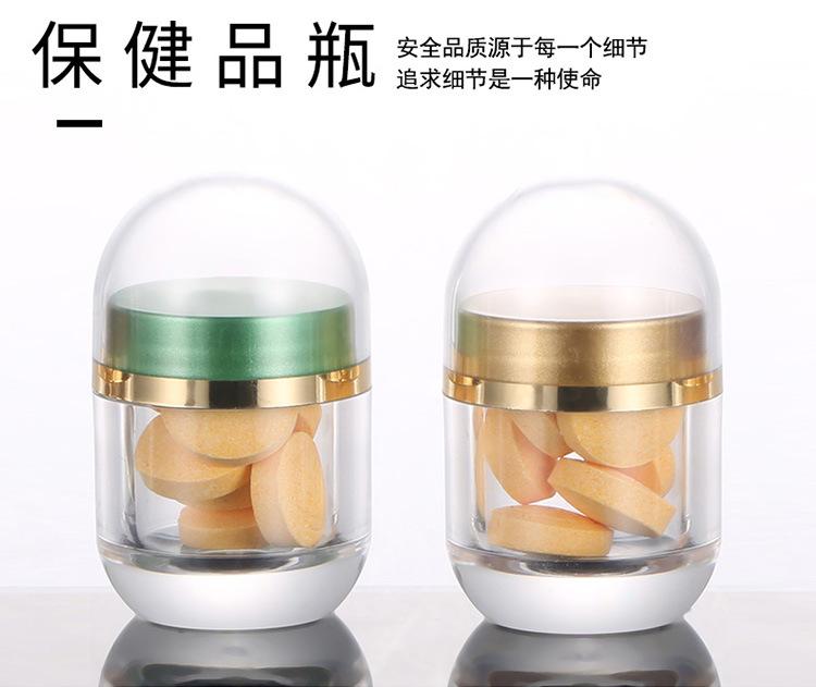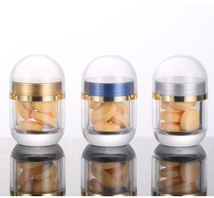 En stock, botella vacía, botella de cápsula acrílica de alta calidad, botella pequeña para medicamentos, botella para el cuidado de la salud transparente y espesa, botella de plástico sellada para pastillas.