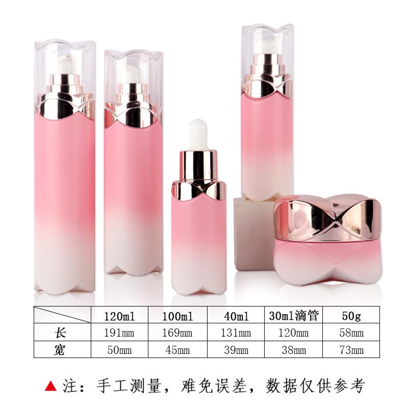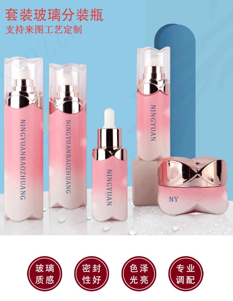 Conjunto de productos para el cuidado de la piel con base de pétalo, botella de agua, crema, esencia, crema, subenvase, botella de vidrio, material de envasado cosmético