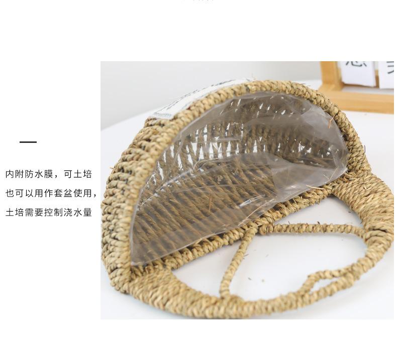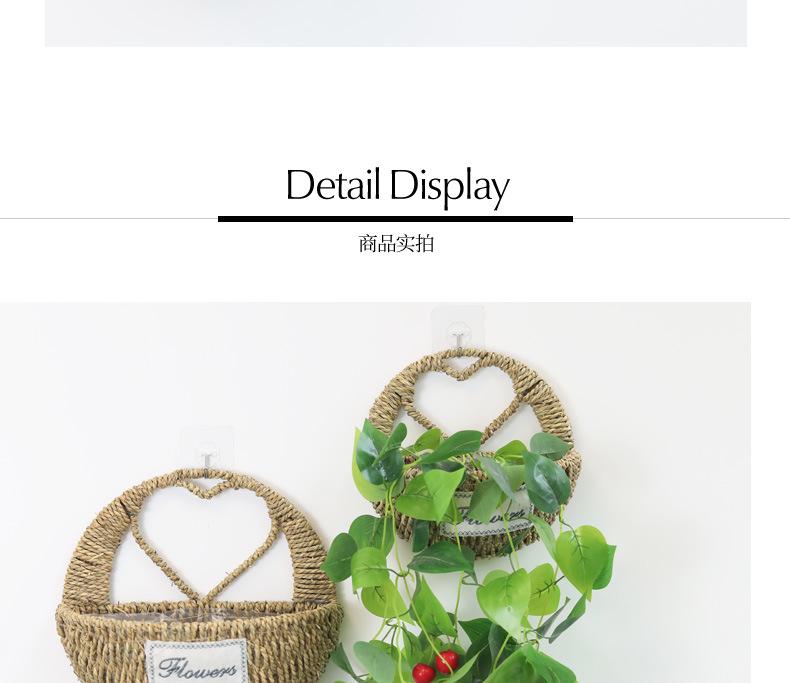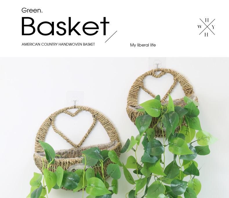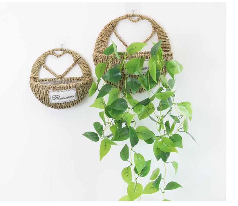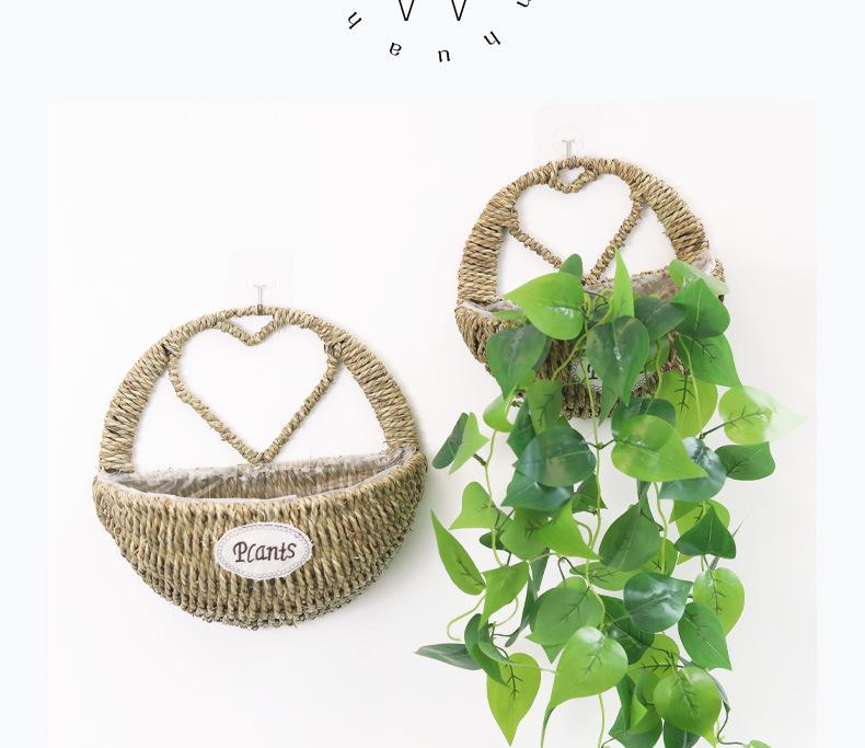 Maceta colgante de pared de paja en forma de corazón, cesta de flores, cesta colgante de flores, cesta colgante de pared, decoración de pared para sala de estar, maceta colgante de planta verde rosa