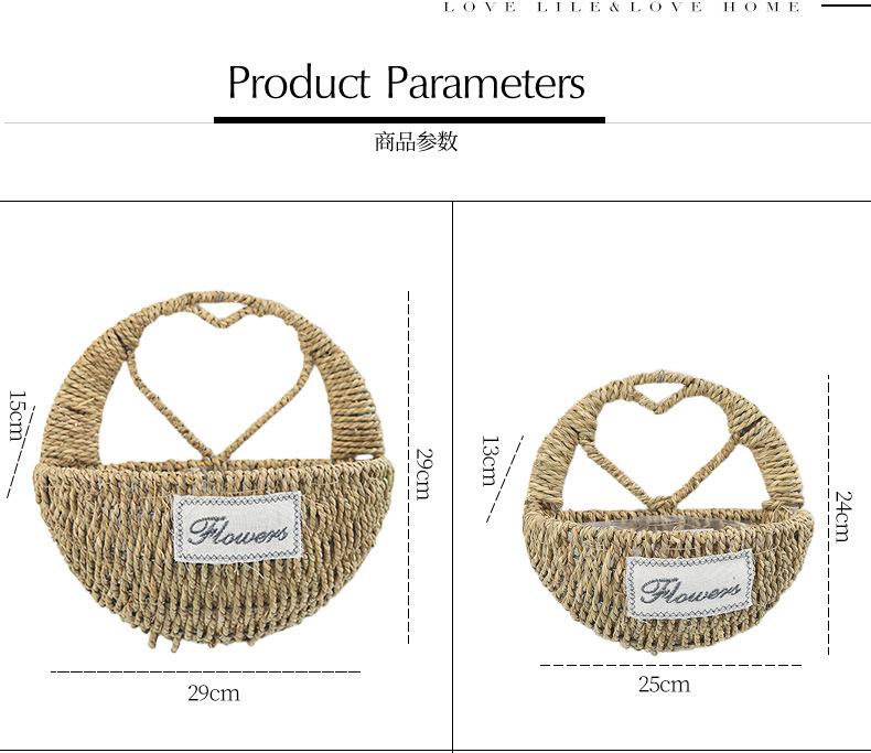 Heart shaped straw wall hanging basket-small